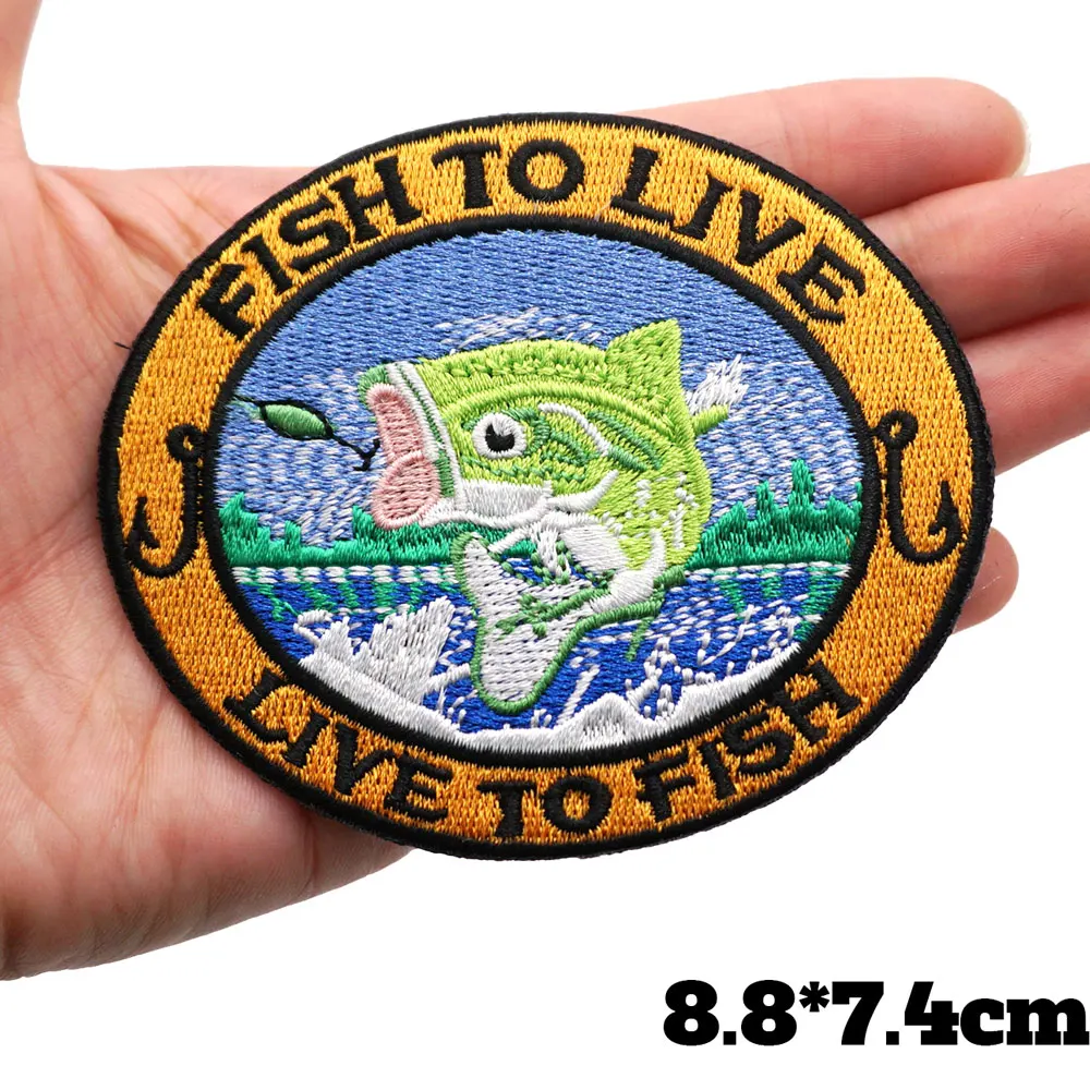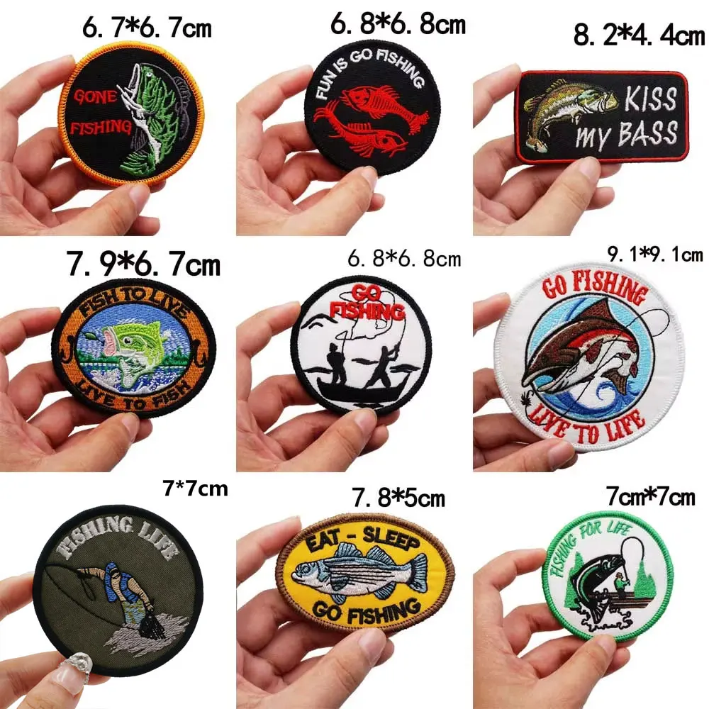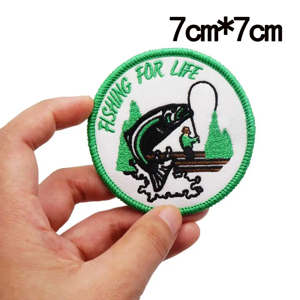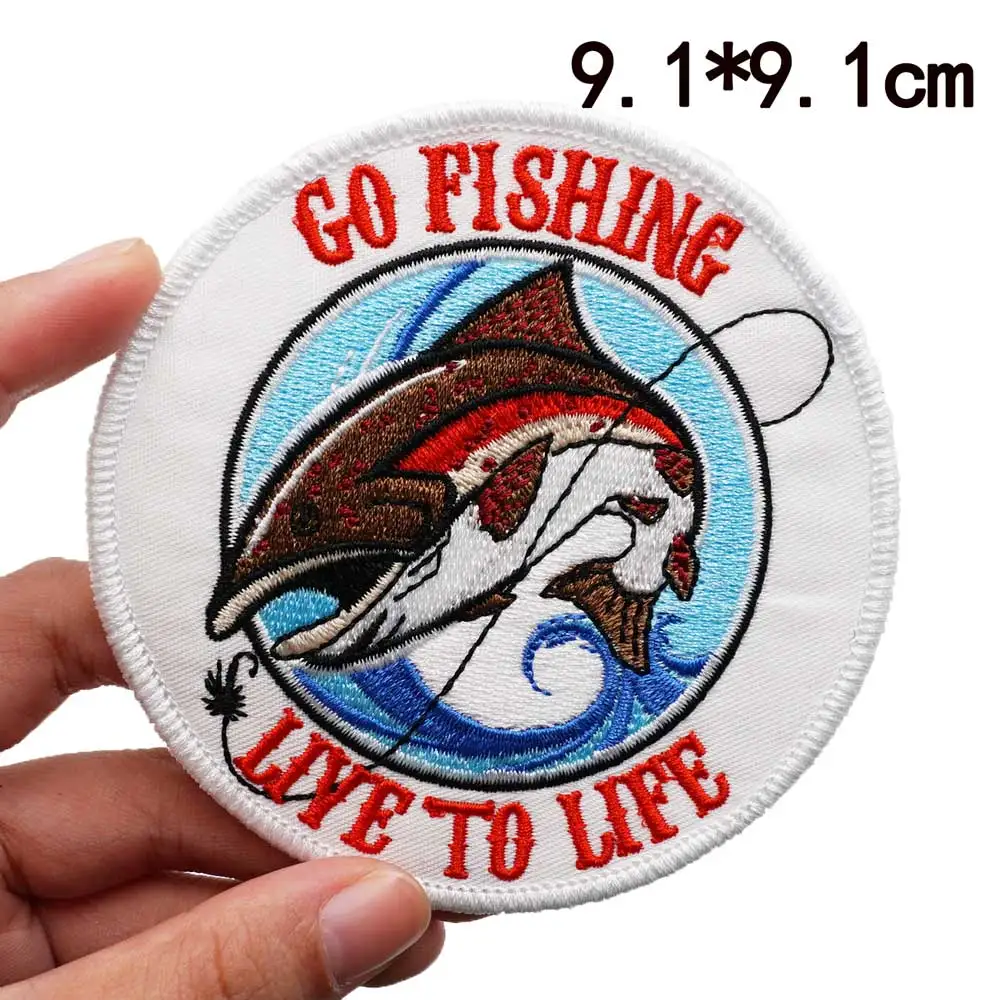 Fishing life gone pesca parches bordados apliques etiqueta de costura punk biker Band Rock ropa insignias con respaldo de gancho
