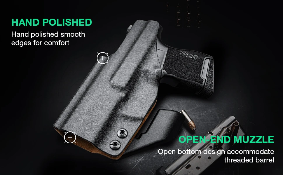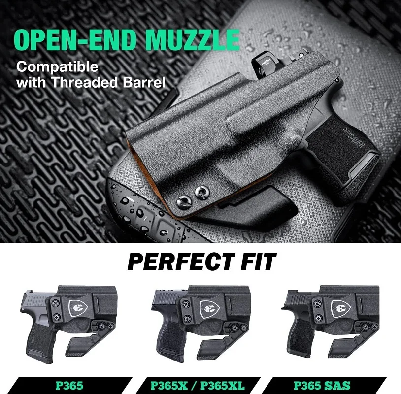 CORTE ÓPTICA: Esta funda Sig P365 está cortada para adaptarse a una amplia variedad de ópticas/puntos rojos