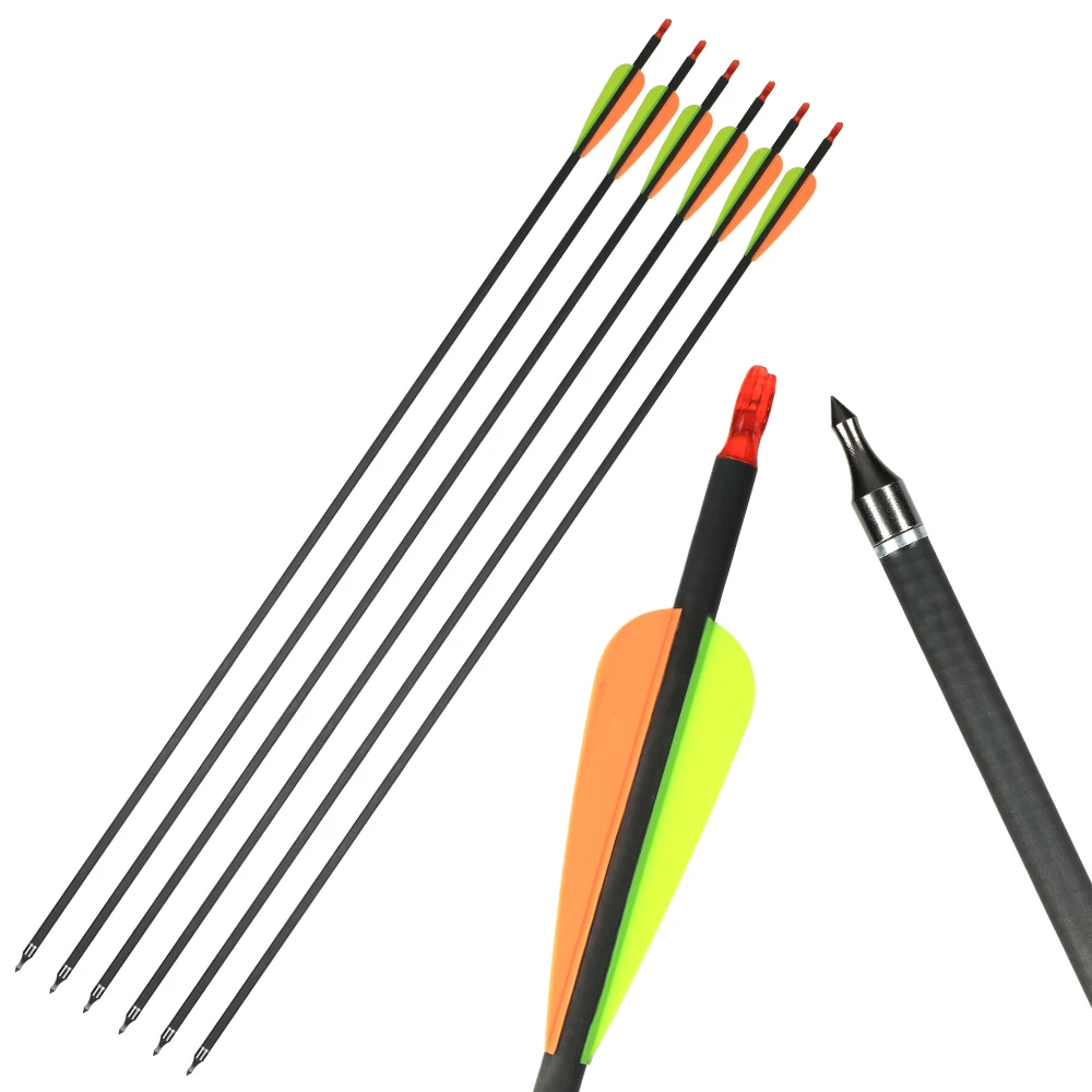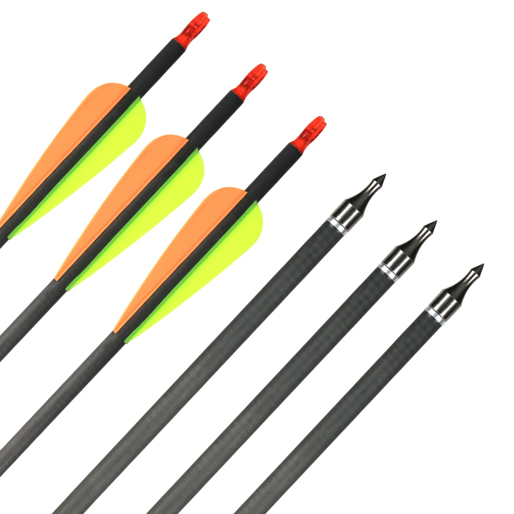 31,5 pulgadas columna vertebral de flecha de carbono mixto 400 con puntas extraíbles práctica de objetivo y flechas de caza para arco compuesto tradicional