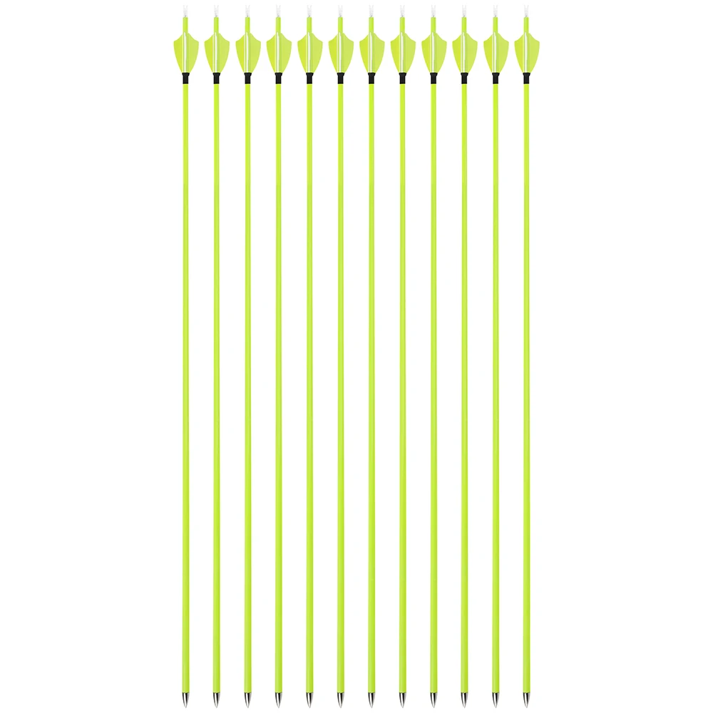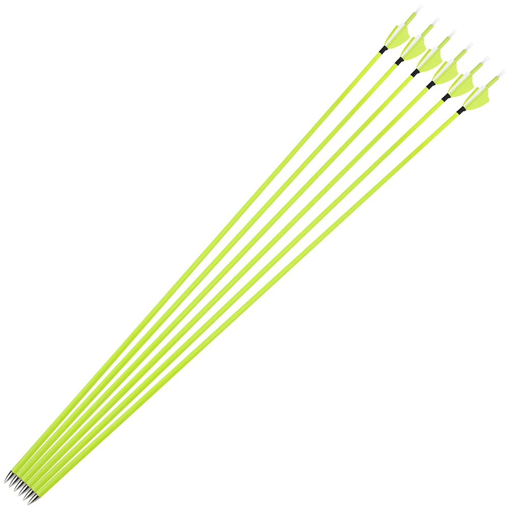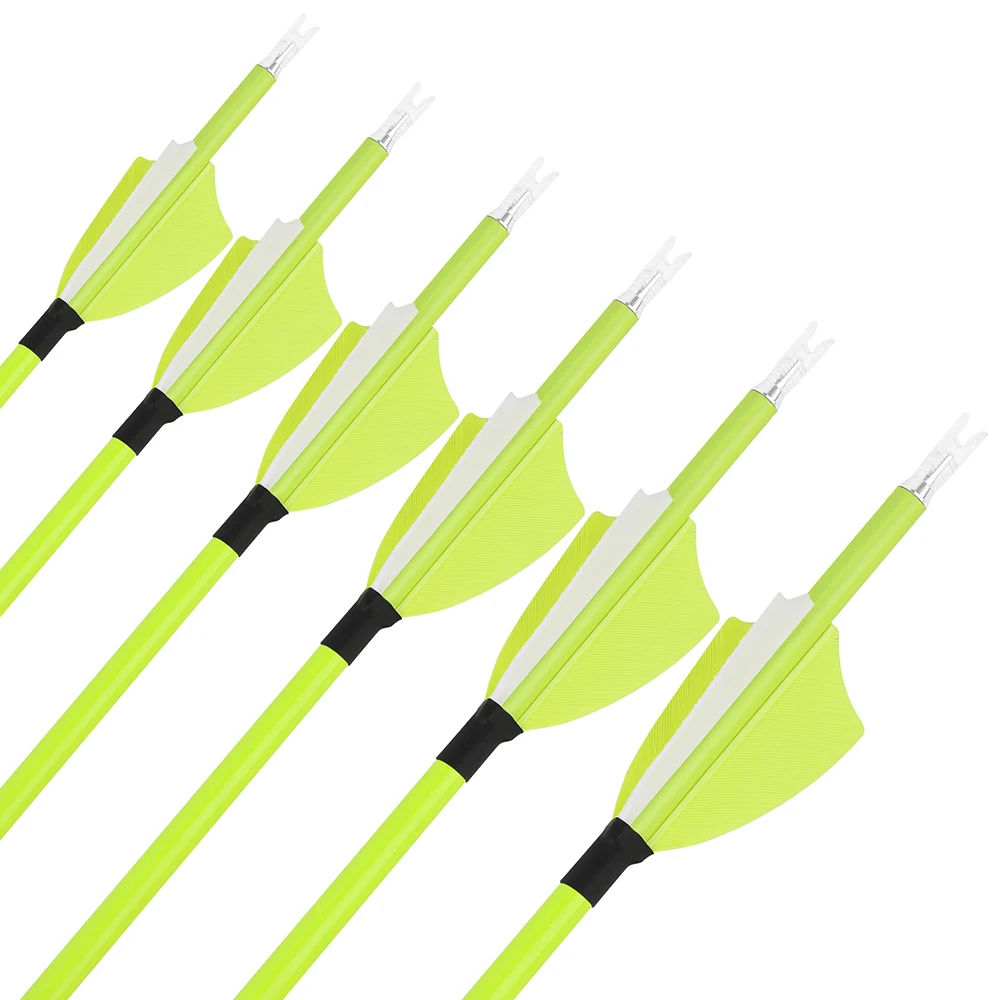 Nombre: Flecha de carbono mixta amarilla fluorescente 1500 Material: Carbono mixto Nivel de perturbación: alrededor de 1500 (con rango de fluctuación) Peso: Aproximadamente 19,9 g-20,6 g (eje de flecha) Pluma de flecha: 1,75 pulgadas 2 amarillo fluorescente 1 pluma de goma blanca Cola de flecha: L Cauda antidesgarro transparente Flecha: insertar flecha Eje de flecha: 76,2 cm Longitud total: 79,2 cm Diámetro interior: 4,2 mm Diámetro exterior: 6,0 mm Nota: 1. No dispare a objetos duros (como paredes de piedra o concreto).Esto podría dañar sus flechas y provocar roturas o grietas. 2.Compruebe el estado de las flechas antes de disparar.Si encuentra grietas en un eje de flecha, cambie otra flecha por razones de seguridad. 3. Utilice un arco adecuado dentro del rango de peso de tracción recomendado.Usar un arco con un peso demasiado alto puede causar daños tanto al arco como a las flechas. 4. Este no es un juguete.No dispare a personas.