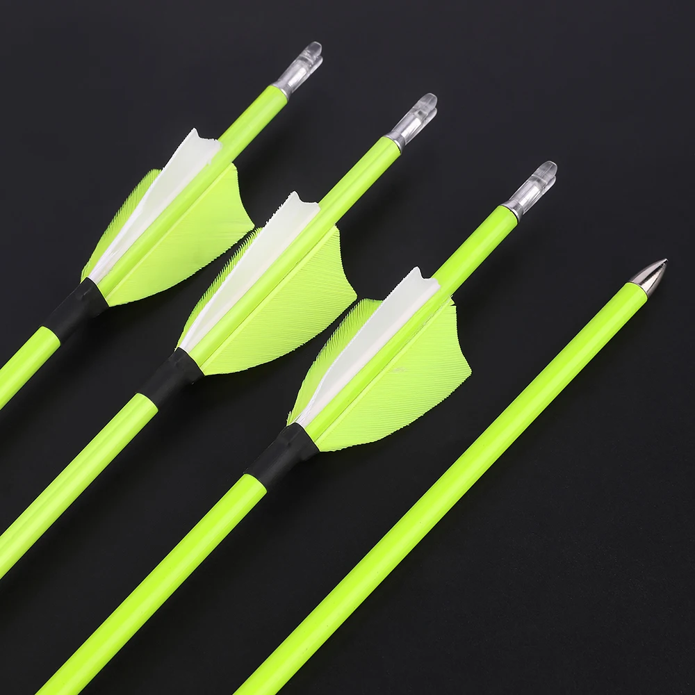 Características: 1. Longitud total de la flecha: 31,1"/79,2 cm, longitud del eje: 30"/76,2 cm; Lomo: 1500. 2. Eje de flecha: OD: 6,0 mm; ID: 4,2 mm. 3. Pluma: pluma de goma protectora de 1,75". 4. Adecuado para: arco compuesto, arco recurvo y arco tradicional. 5. Puntas de flecha: 100 puntos de campo reemplazables atornillados de grano, equipados con junta tórica de goma negra.