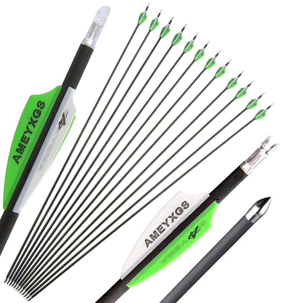 6/12 Uds flecha de carbono puro 32 pulgadas columna 600 flechas de tiro con arco 80Gr punta de flecha ID4.2mm eje arco compuesto recurvo caza tiro