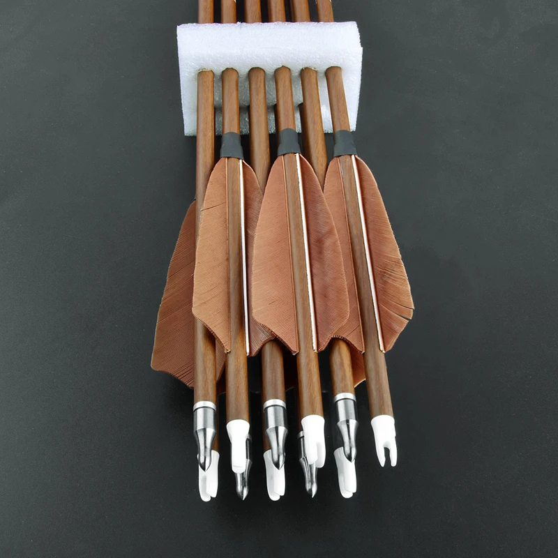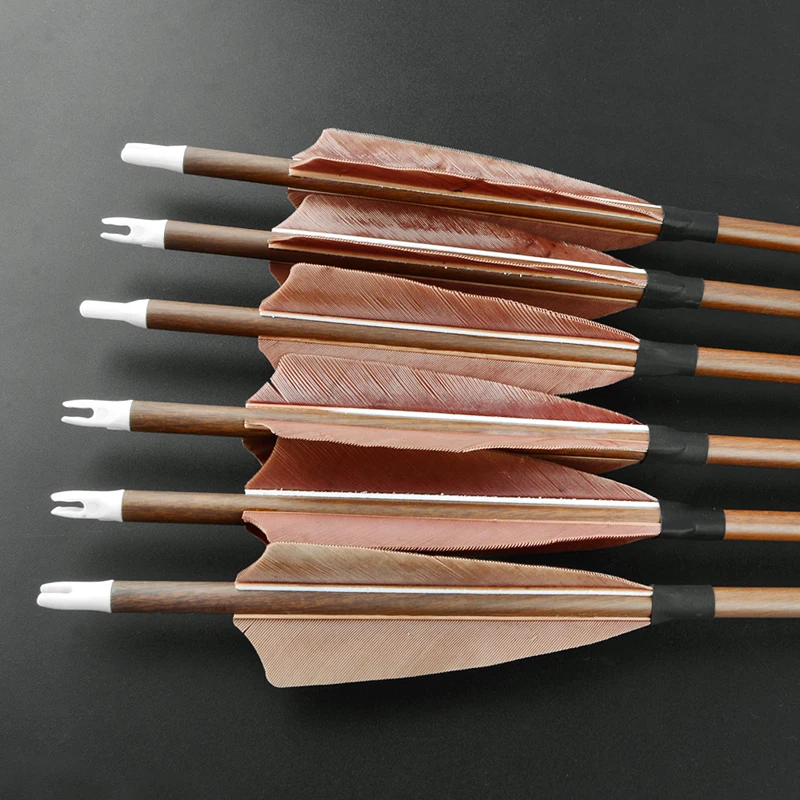 Nombre: Flecha de carbono puro de grano de madera (3 piezas de plumas de pavo marrón)