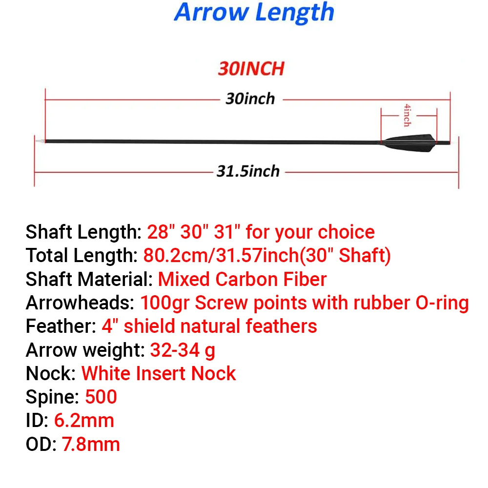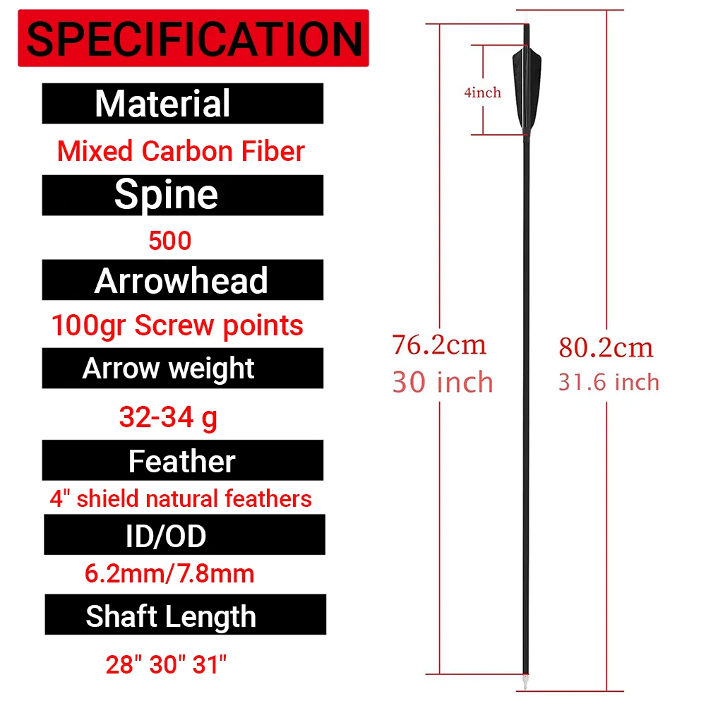 Nombre del artículo: Flechas de carbono para tiro con arco
