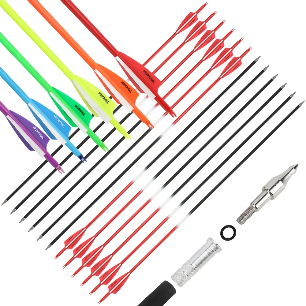 Flecha de carbono SP500 de 31,5 pulgadas, paletas de goma para tiro con arco de carbono mezclado, punta de flecha reemplazable de 100 granos, tiro al aire libre y caza, 6/12 Uds.