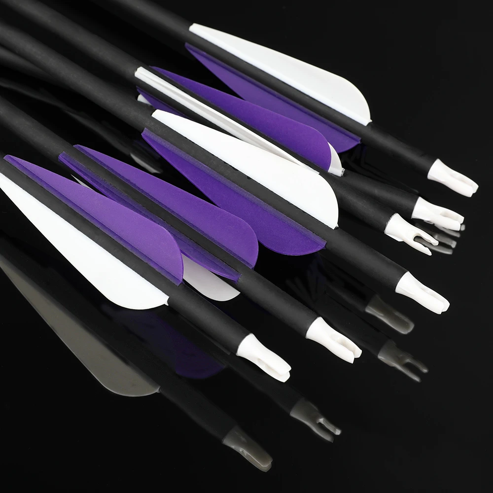 -Nombre del artículo: Flecha de carbono mezclada de tiro con arco -Color de la pluma: 2 púrpura/2 amarillo + 1 manta de goma blanca. -Material: mezcla de carbono -Pomo: 500 -Longitud total: 80,3 cm/(31,6 pulgadas) -Longitud del eje de la flecha: 76.4 cm/(30 pulgadas) -ID: 6,2 mm -OD: 7,8 mm -Punta de flecha: 100 granos. -Peso: alrededor de 37 g/unidad -Uso: para accesorios de caza y tiro con arco -Cantidad: 6/12 piezas -Nota: Todos los parámetros anteriores se miden manualmente y pueden tener errores.Consulte el producto real para obtener información específica. Características: 1.Con una junta tórica de goma negra, puede evitar que las puntas de flecha se suelten de manera eficiente. 2.Flecha Nock Sin fijación con pegamento, se puede girar fácilmente para adaptarse a arco recurvo y arco compuesto. 3.Construcción de fibra de carbono de alta calidad; para la mayoría de los arcos compuestos de tiro con arco, arco recurvo y arco tradicional. 4.Buen rendimiento, baja descarga manual a alta velocidad. 5. Las puntas de las balas son de repuesto, pesan 100 granos, perfectas para la práctica de tiro al blanco o al aire libre.