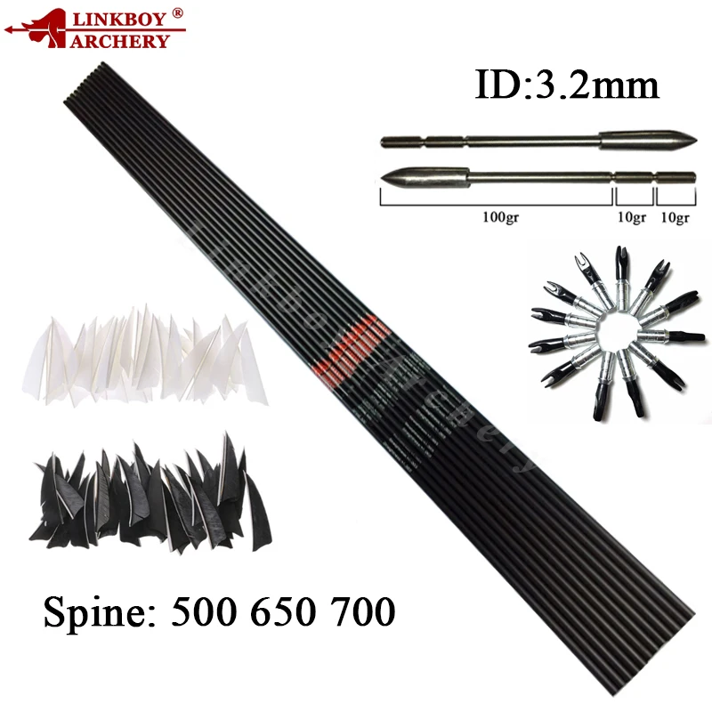 Flecha de eje de carbono X10 de 6/12 piezas, diámetro exterior de 5,56mm, 500 puntas de tipo interno para caza con arco