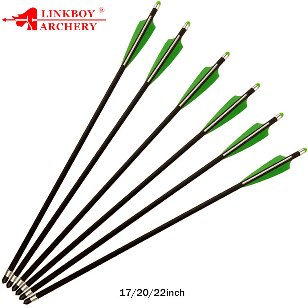 Flecha de carbono de Ballesta de 12 piezas 17/20/22 pulgadas de longitud ID7.6mm OD 8,8 Mm paletas de 3 pulgadas para caza de ballesta