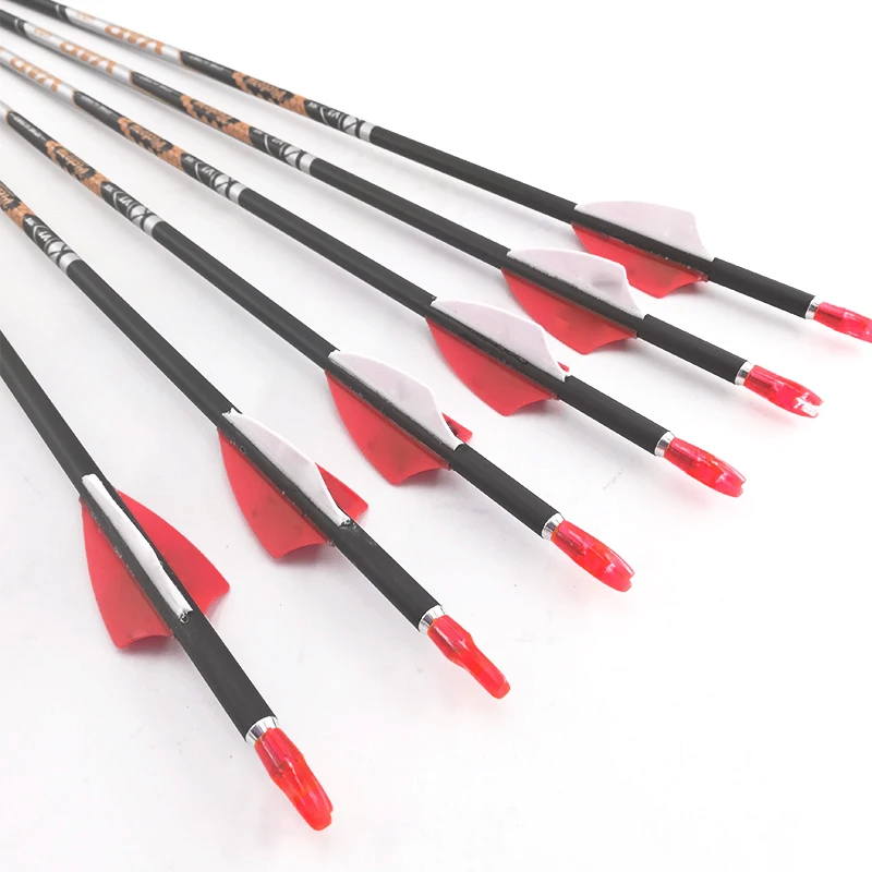 Flechas de carbono de 12 piezas 30,5 'V1 Spine 350 400 450 500 600 700 750 800 900 1000 Pin Nock Points Arco recurvo Longbow Hunting Shooting