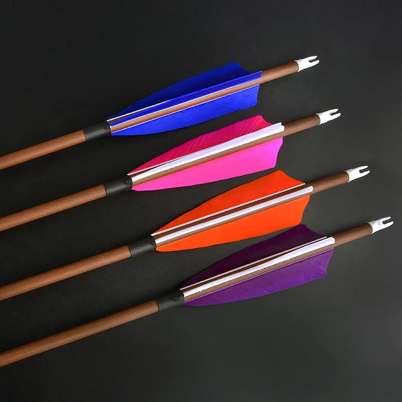 -Nombre del artículo: Arco de tiro con arco flecha al aire libre de carbono puro con plumas naturales
