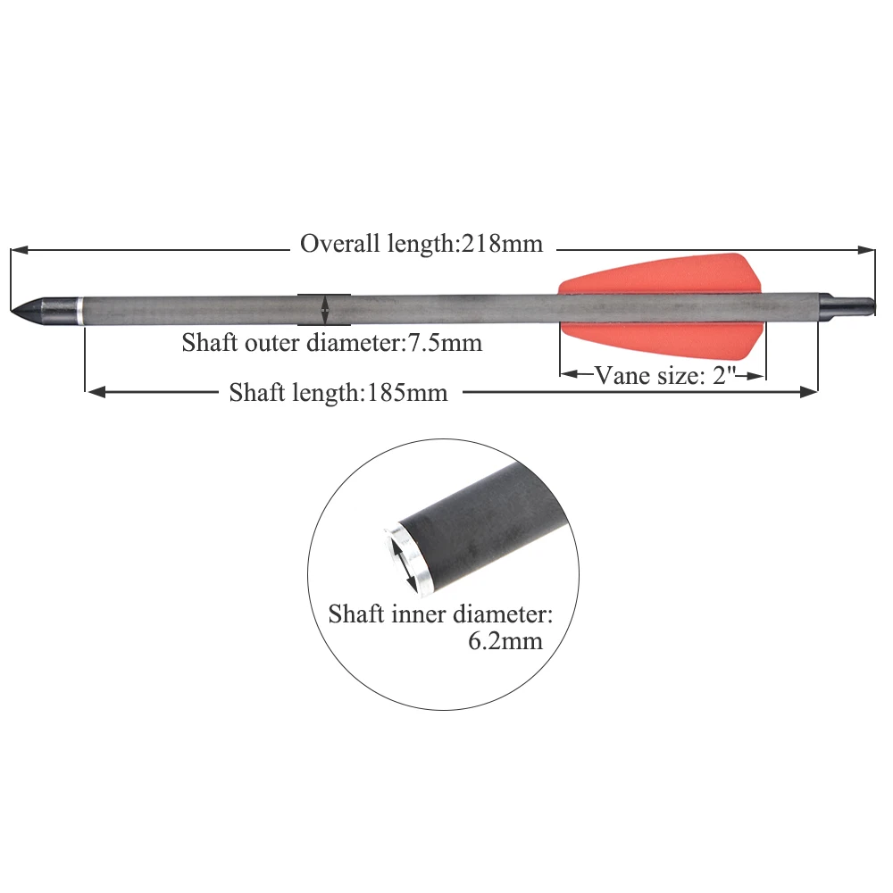 Flechas de carbono puro, Perno de Ballesta de 7,5/15 pulgadas con pluma de 2 pulgadas, caza al aire libre, tiro, práctica de tiro, Flecha de arco, 6/12/24/24 pulgadas