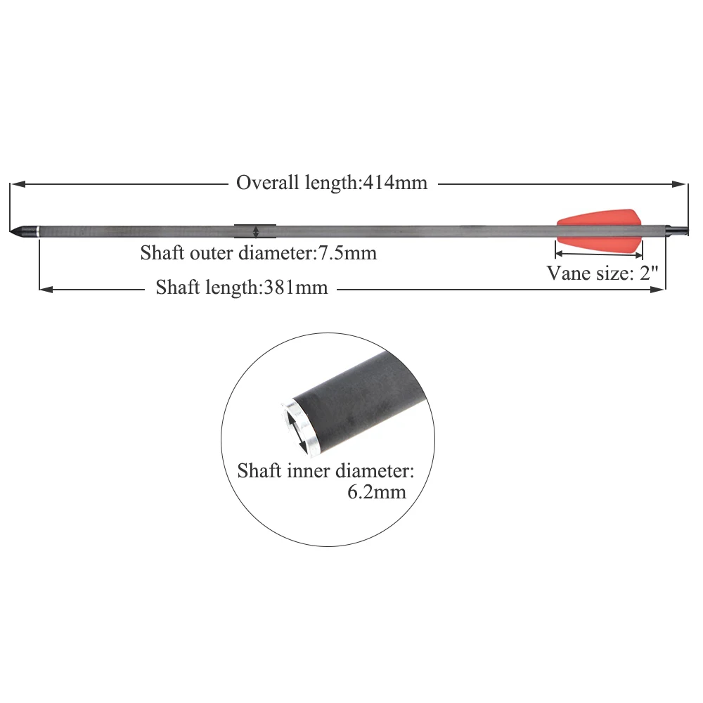 Flechas de carbono puro para caza al aire libre, Perno de Ballesta de 7,5/15 pulgadas con pluma de 2 pulgadas, objetivo de tiro, práctica de arco, Flecha de 6/12/24 piezas