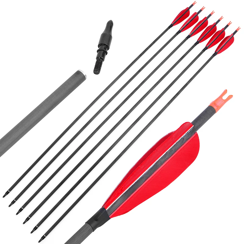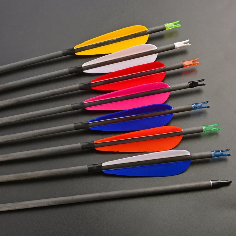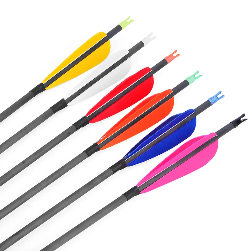 Flechas de Carbono Puro, Arco Recurvo de Pluma de Pavo, 6/12 ", 31,5", SP 600, Tiro con Arco Compuesto, Tiro de Caza, Objetivo