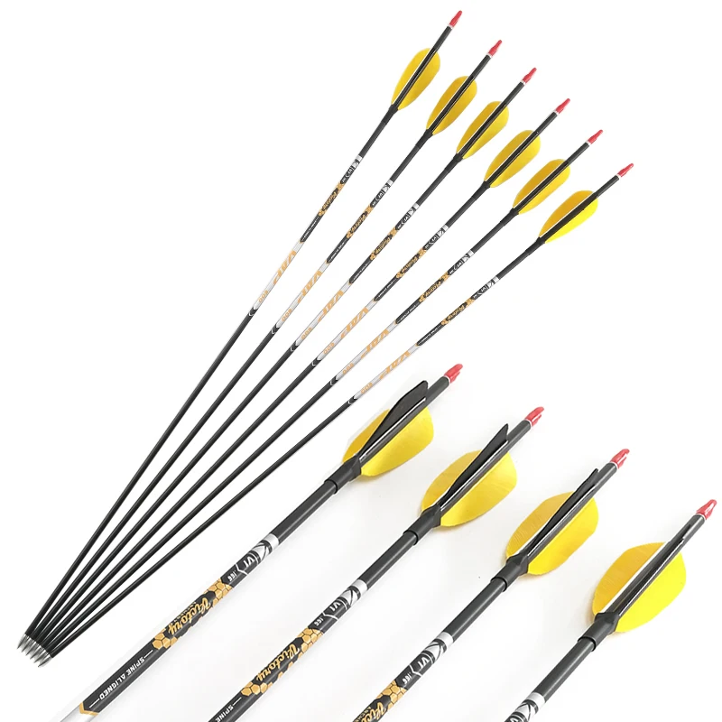 Tiro con arco flechas de carbono ID4.2mm Eje 3 pulgadas pluma de pavo para arco recurvo compuesto caza arco largo 12 piezasDescripción:ID: 4,2mmColumna vertebral: 350 400 450 500 600 700 800 900 1000Longitud del eje: 30,5 pulgadas CORTE LIBREColor: negroPuntos de flecha: grano 80 (se puede cambiar a 100, grano 120. Déjenos un mensaje).Nock de flecha: Pin NockPluma: pluma de pavo de ala derecha de 3 pulgadasEn el paquete:12 Flechas de color,