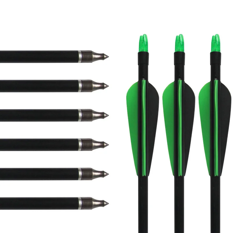 Tiro con arco de caza 6 piezas 80cm de longitud Flechas de fibra de vidrio Punta de flecha reemplazable Práctica de objetivo Punto de acero Pluma negra verdeMaterial del eje: fibra de vidrioLongitud: 30 pulgadasDiámetro del eje: aproximadamente 8mmPunta: aceroColor del eje: negroFletching: PlásticoColor de la pluma: verde y negroPaquete: 6 piezasPeso: aproximadamente 36G