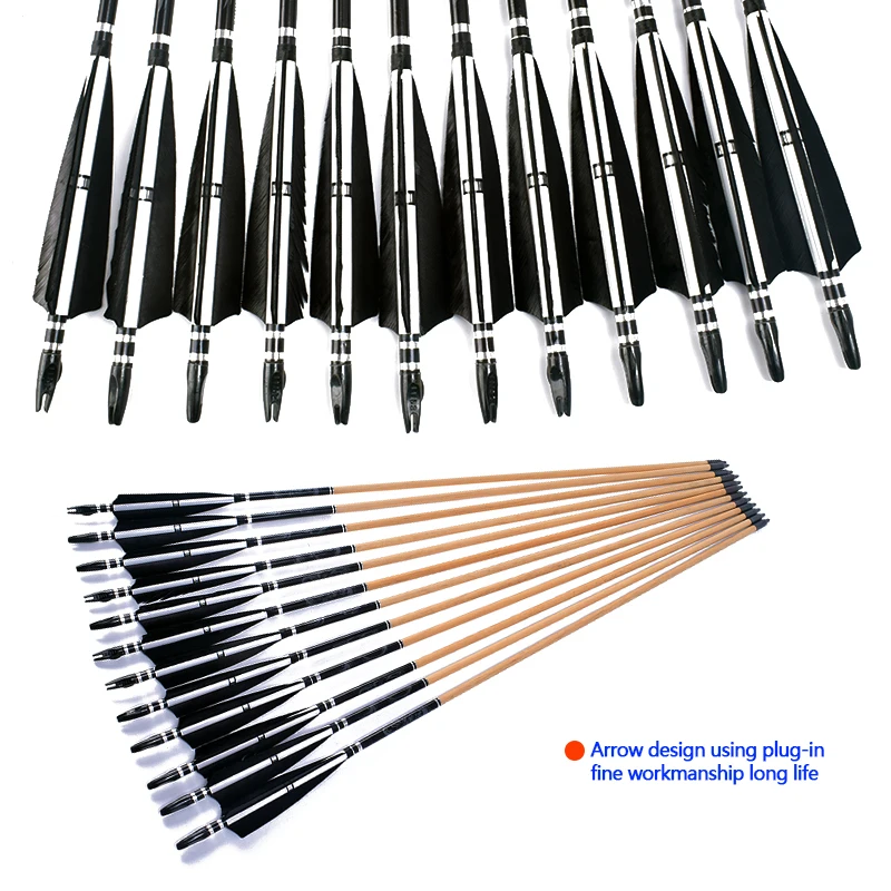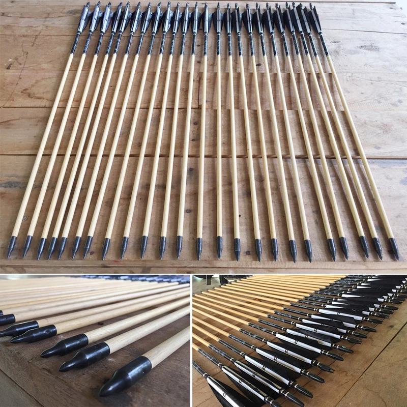 12 Uds. Ardilla de tiro con arco hecha a mano de madera 80cm flechas plumas de pavo 25-50 libras caza tiro con arco al aire libre