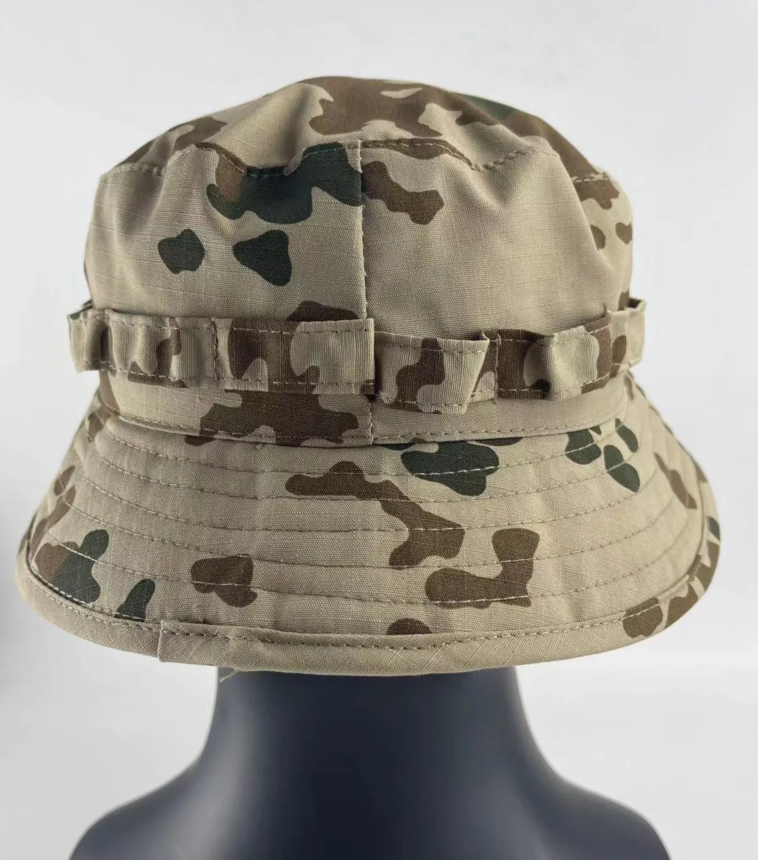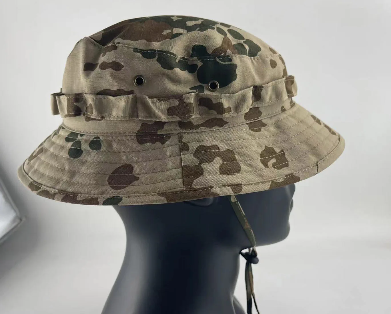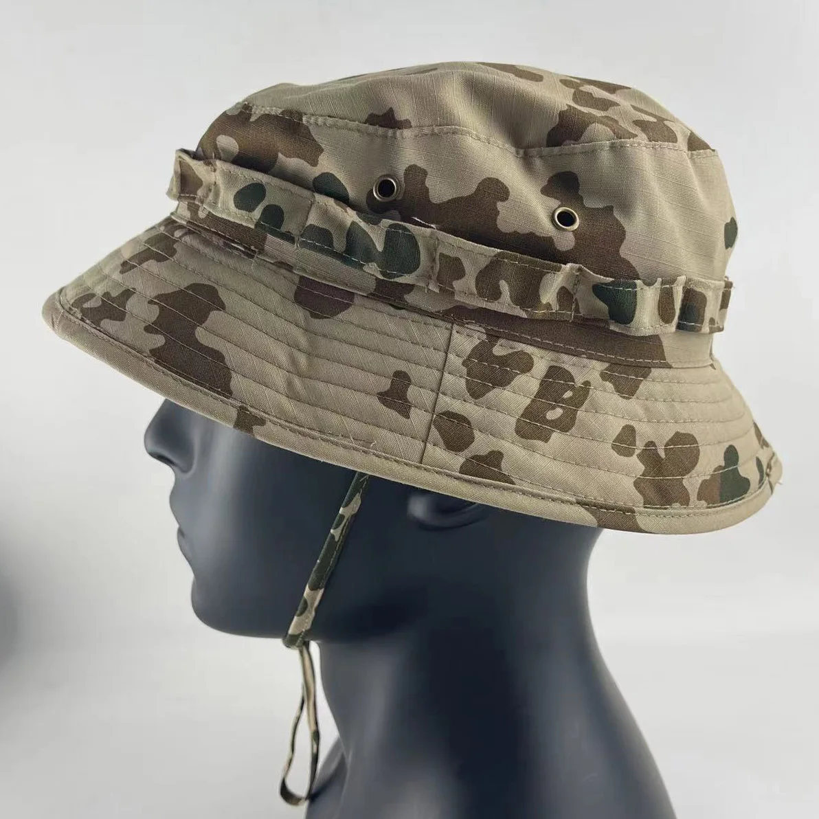 Flecktarn visera De ala redonda para montañismo al aire libre, visera táctica moteada alemana del desierto, De ala corta