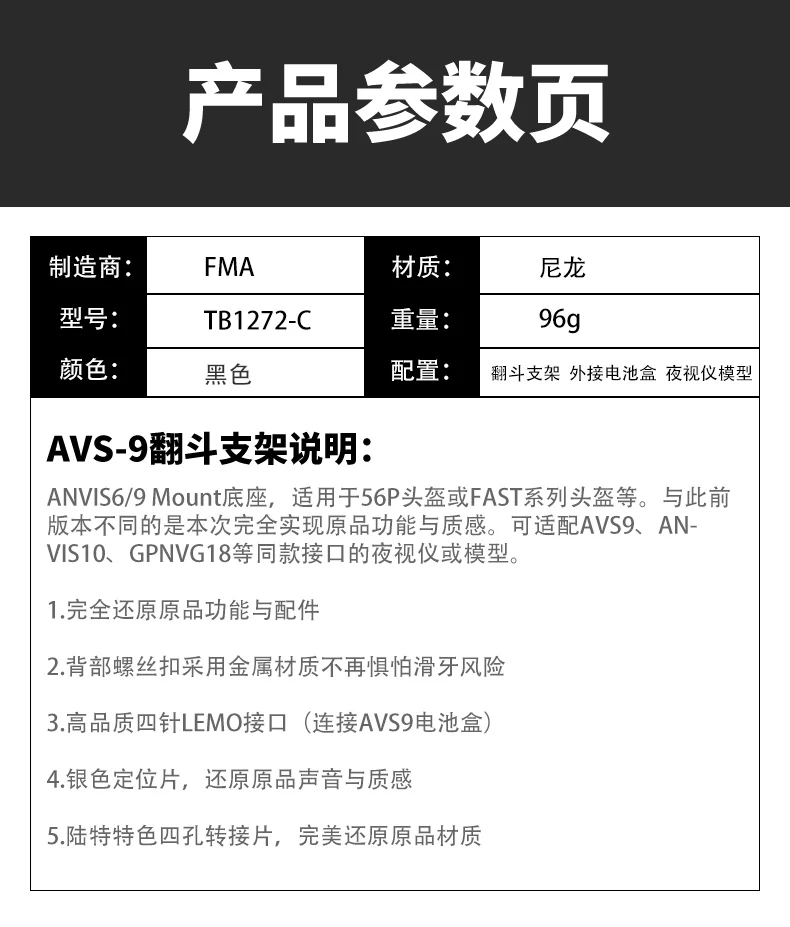 FMA AVS9 ANVIS6/9 Versión funcional NVG Base de montaje para AVS9 GPNVG18