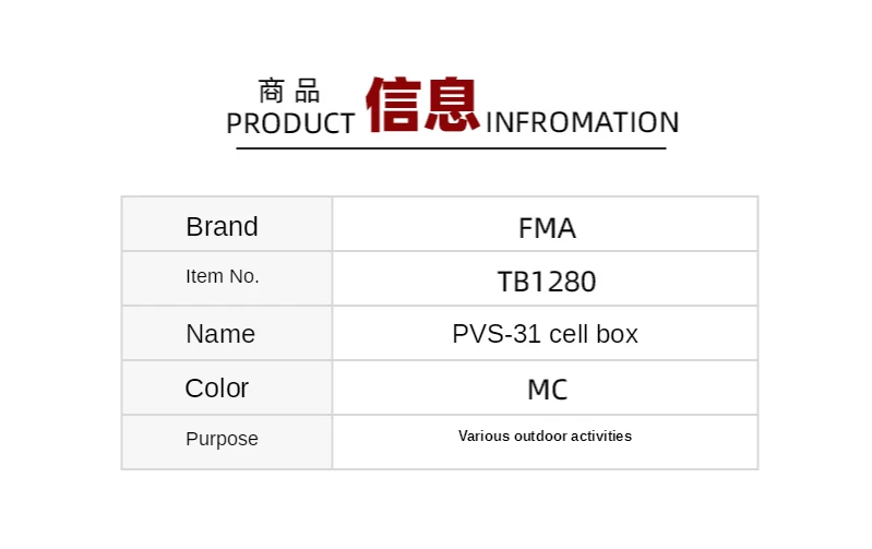 Tenga en cuenta: Es solo un modelo, sin función.Fabricante: FMAMaterial: NylonColor:MC,BKApto para el modelo PVS31El paquete incluye: 1 caja de batería vacía (Excluido casco)
