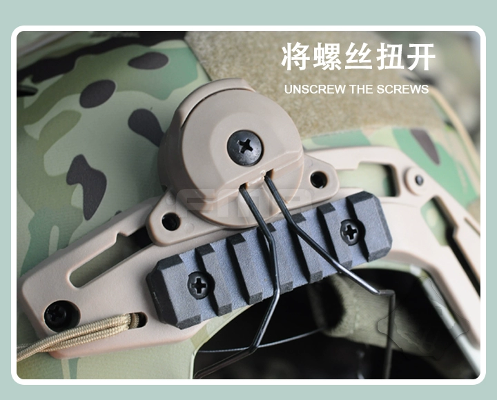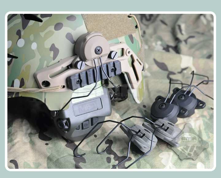 Para el diseño único del casco de la serie EX, el uso de dos tornillos fijos, el riel de guía no necesita ser desmontado, la tuerca en el riel guía se puede ajustar libremente a la posición adecuada, operación muy simple, Hay dos series de hebilla de auriculares, GEN1 es adecuado para auriculares Comtac 1/11; GEN2 es adecuado para auriculares MSA con PELTOR COMTAC I/II/III/IV (C1, C2, C3.C4) soportes dedicados auriculares tácticos
