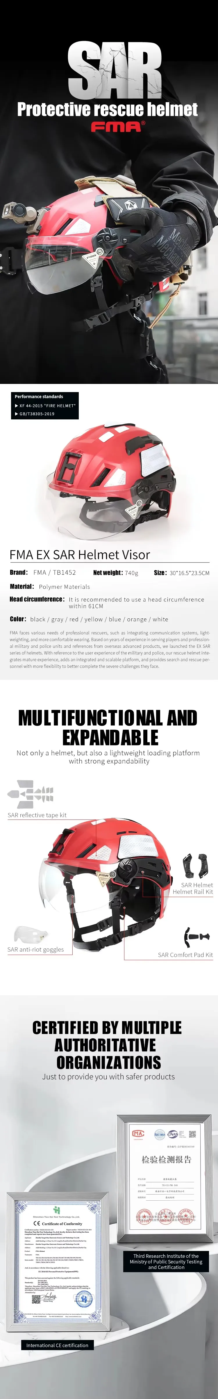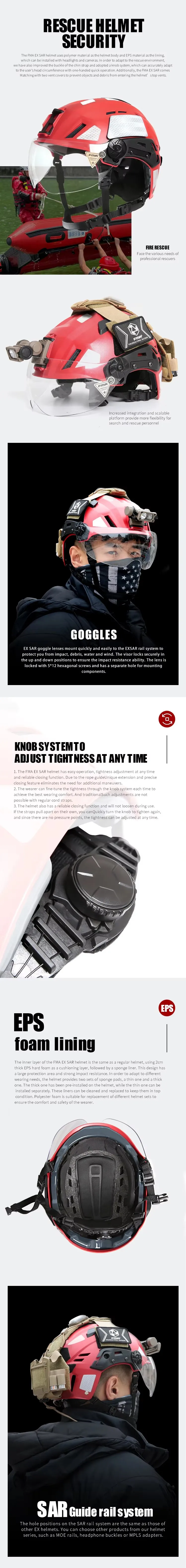 FMA búsqueda y rescate táctico SAR ajuste ajustable circunferencia de la cabeza uso de seguridad ajustable casco duro TB1452