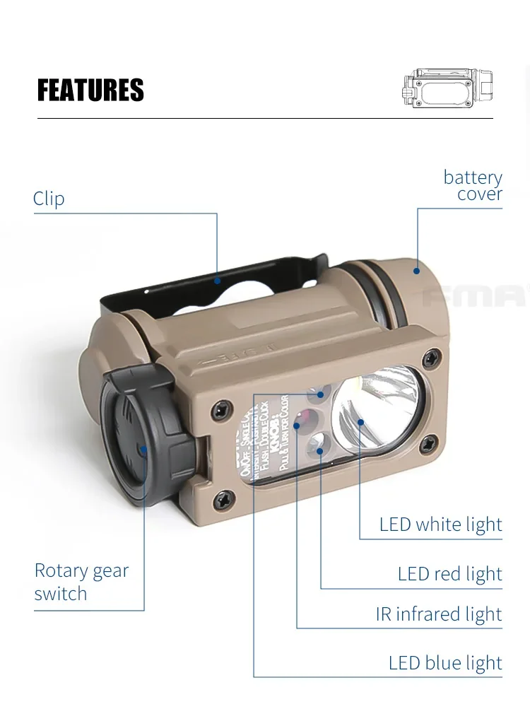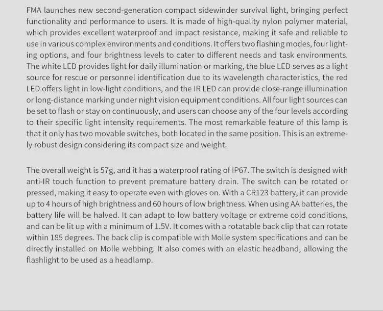 FMA cascabel compacto II luz manos libres IR/LED luz de supervivencia faro Tricolor lámpara de señal intermitente accesorio para casco