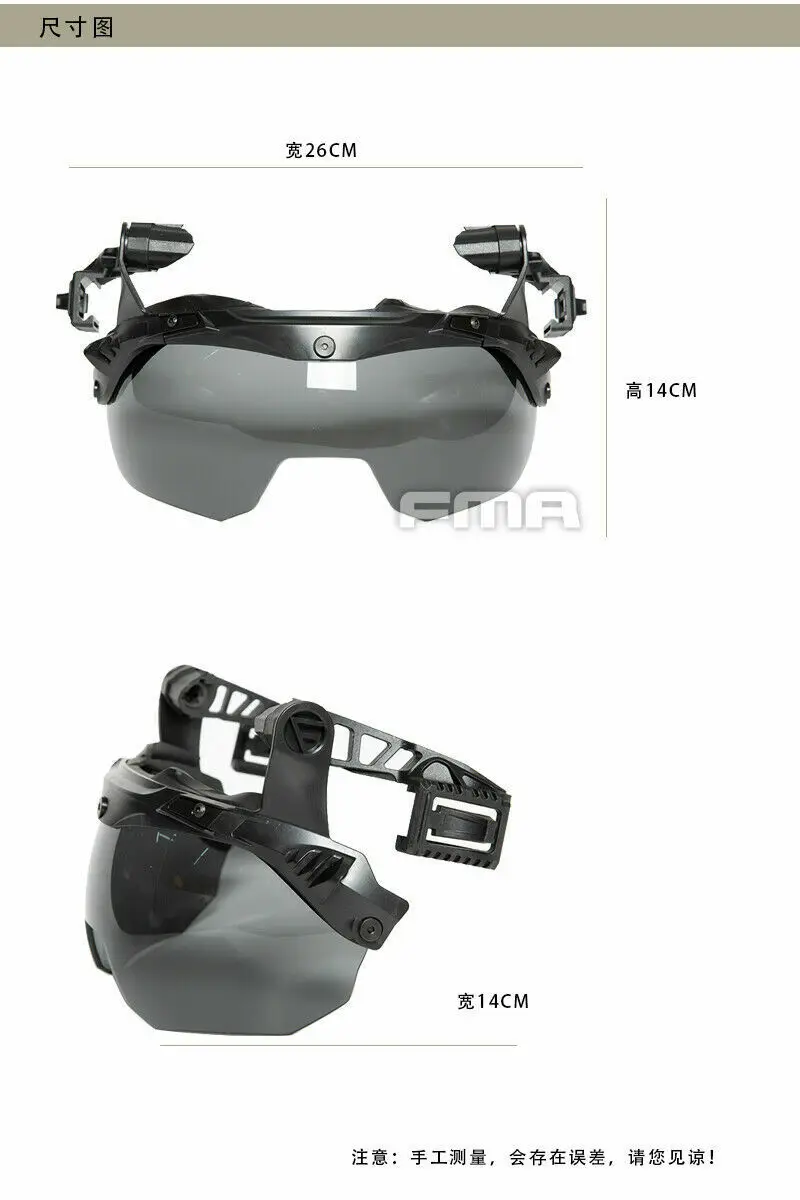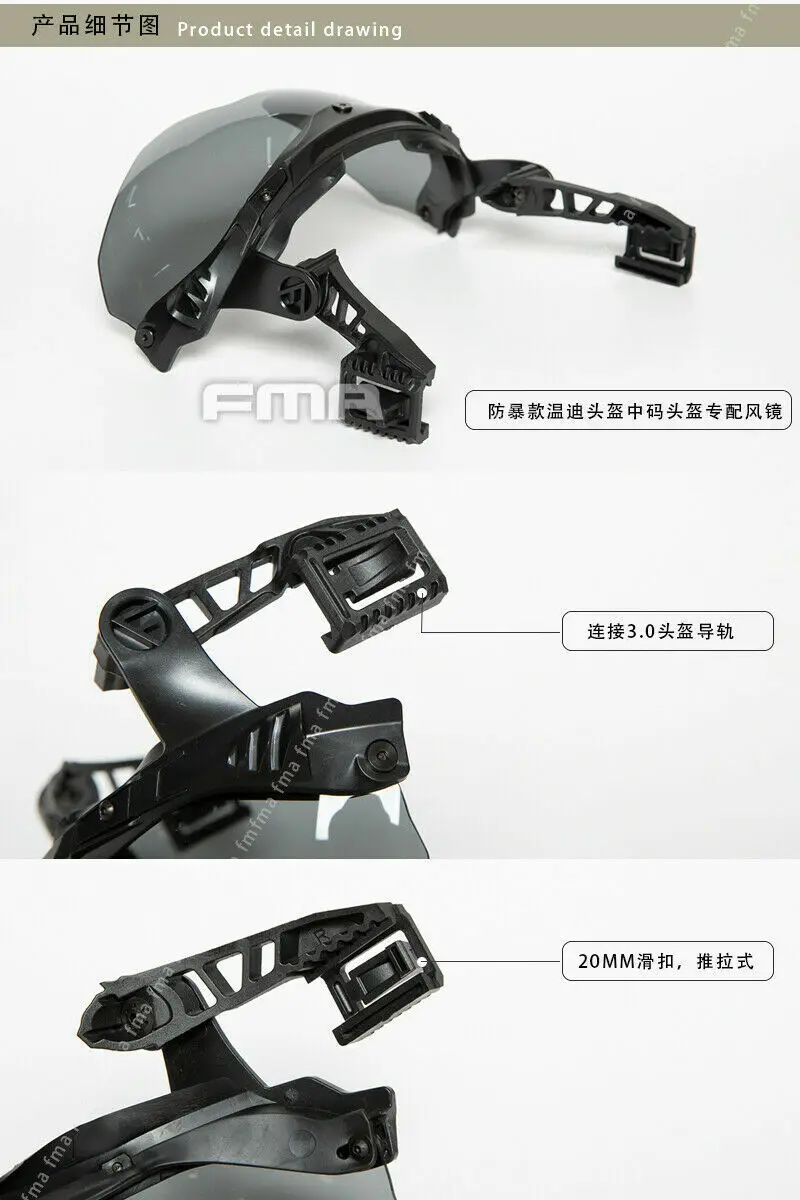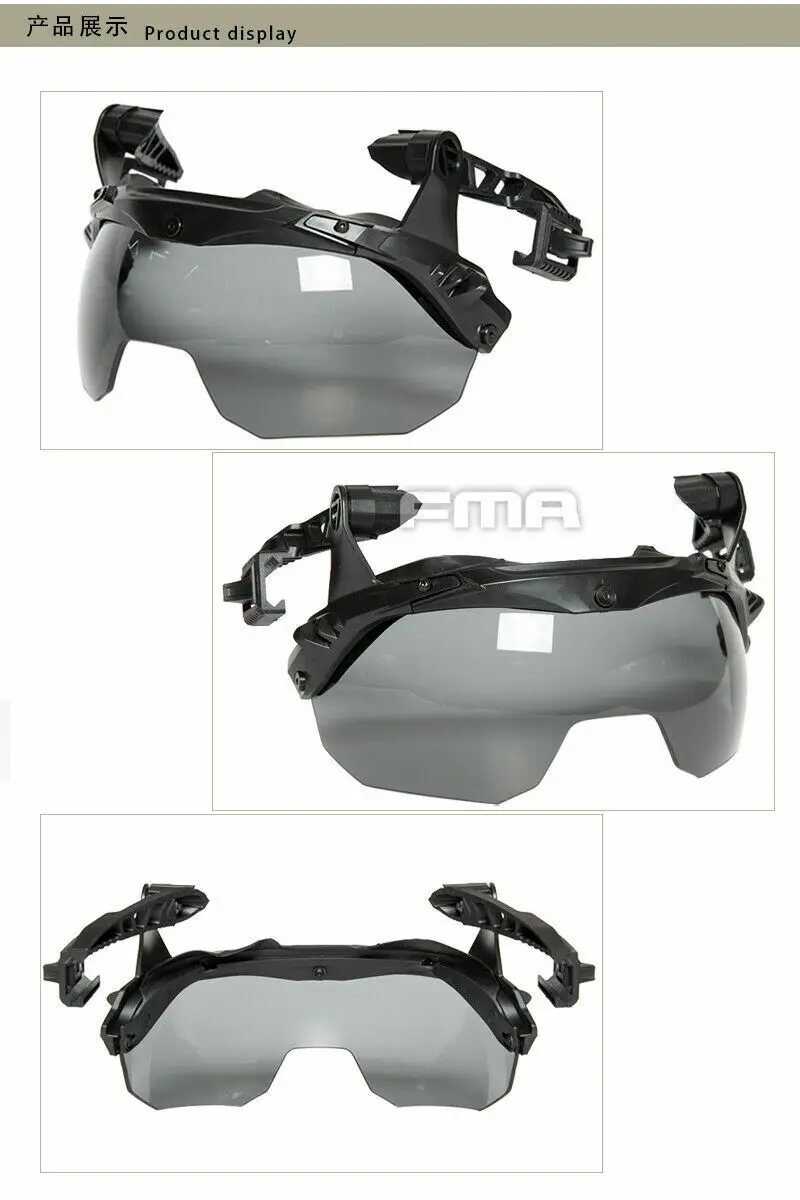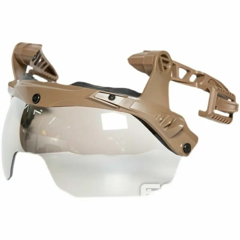 Adecuado para las gafas de código M del casco antisuciedad de Wendy para proteger sus ojos de daños por líquidos y cáscara.Las gafas son un sistema de gafas liviano y discreto, una instalación rápida y una parte frontal sin herramientas del sistema de instalación de accesorios track 3.0.Se puede ajustar rápidamente a tres posiciones preestablecidas (hacia abajo, arriba y almacenamiento) y proporciona espacio libre para la instalación nvg en la posición de almacenamiento.La configuración estándar de la máscara a prueba de balas utiliza una brida flexible para evitar que los residuos y líquidos penetren en los ojos del usuario desde el borde del casco.