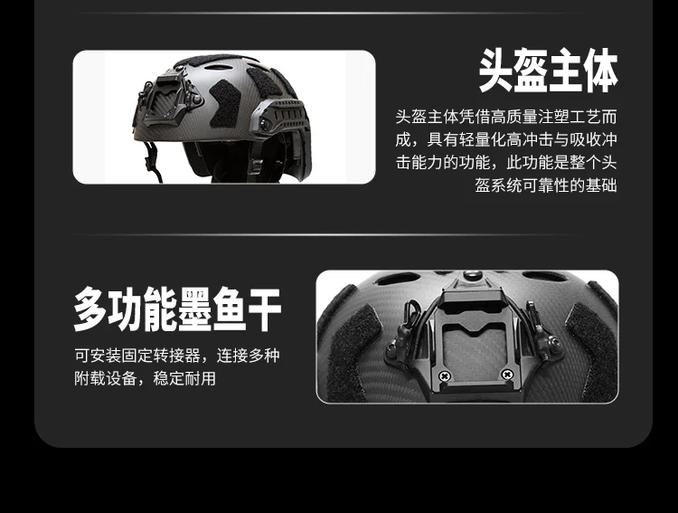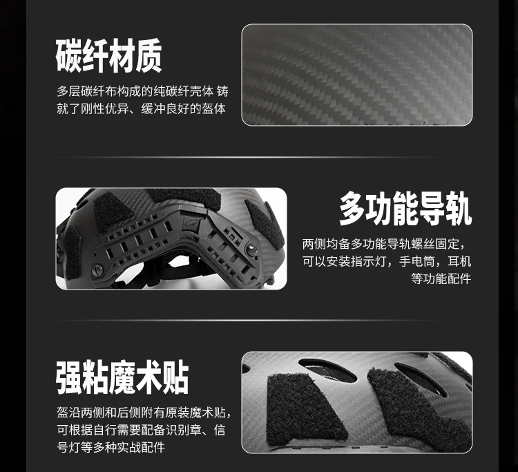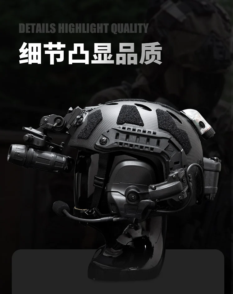 Descripción: La versión de fibra de carbono de este casco no está hecha a mano, está formada por la columna de prensa de la máquina de moldes, el grosor del cuerpo del casco es uniforme, el proceso de la superficie es de alta calidad, los detalles de la página de detalles son tomados por el producto, Y se puede mostrar el fino proceso del casco. La ligera resistencia a los impactos y la capacidad de absorción de impactos del casco SF de fibra de carbono son la base para mantener la fiabilidad de todo el sistema del casco. La versátil sepia de metal del casco se puede conectar a faros, visión nocturna, cámaras de acción y otros equipos, Estable y duradero. Ambos lados están equipados con rieles de guía multifuncionales. A diferencia de los rieles ordinarios del casco, este riel guía se compone de dos partes, que se pueden separar y desmontar. Un solo riel de guía se puede montar en un casco de fibra de carbono ligero y delgado para satisfacer las necesidades de los usuarios con una variedad de cascos. Tornillo guía fijo, se puede instalar luz indicadora, linterna, auriculares y otros accesorios funcionales. El casco está equipado con velcro original, Que se puede equipar con una variedad de accesorios prácticos como insignias de identificación y luces de señalización según sus necesidades, para que su casco sea más característico.