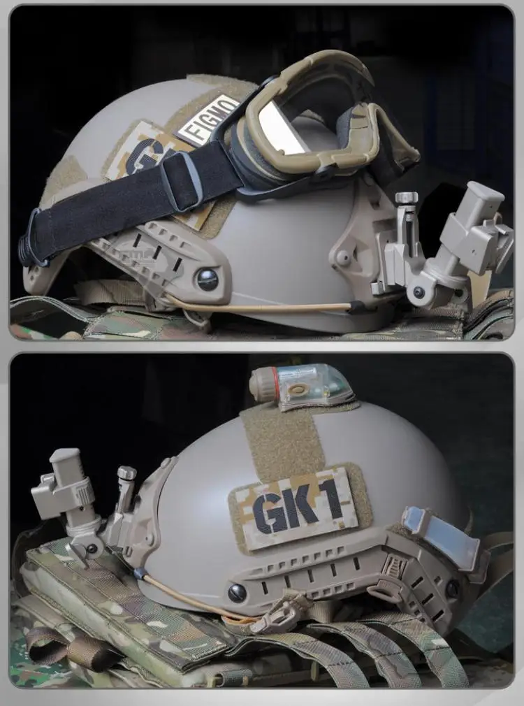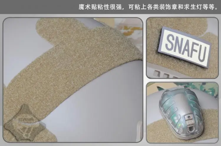 5, Velcro de alta resistencia, el Velcro se puede equipar con luces de identificación personalizadas de Velcro e IR y otros accesorios según la demanda, el velcro integral y multiángulo puede hacer que sus accesorios se peguen en la necesidad del lugar, se puede usar con tela de casco, más personalizada.