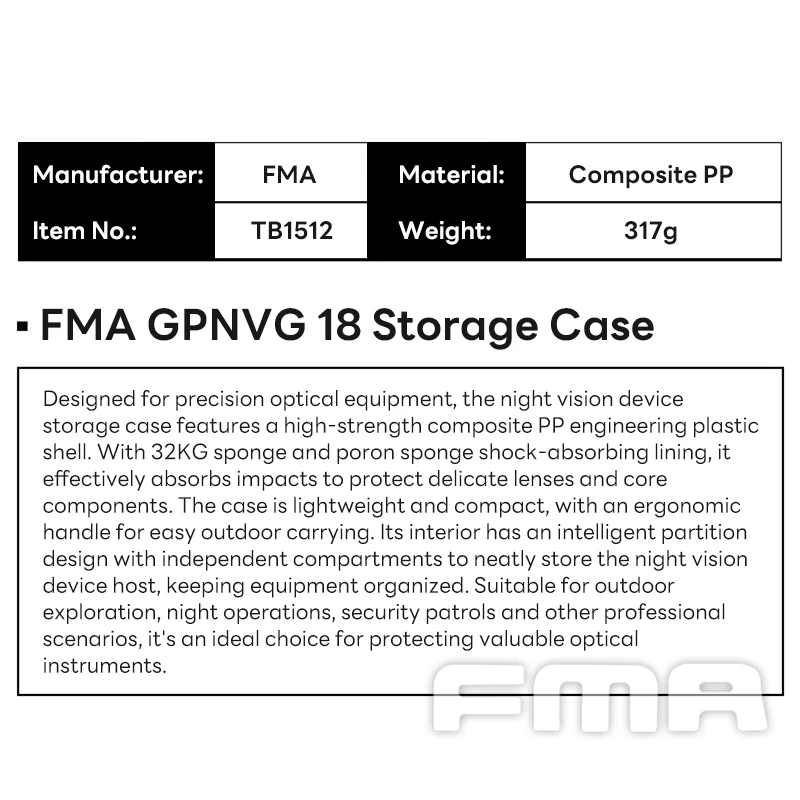 FMA-estuche de almacenamiento táctico GPNVG18, esponja portátil ligera y resistente, caja de almacenamiento de equipo táctico absorbente de golpes TB1512