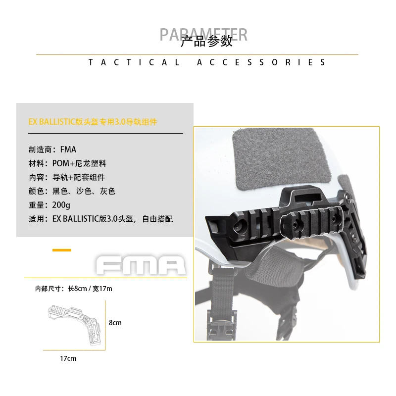 Adaptador de riel de repuesto para casco táctico FMA EX BALLISTIC 3,0, soporte para traje de riel guía para casco