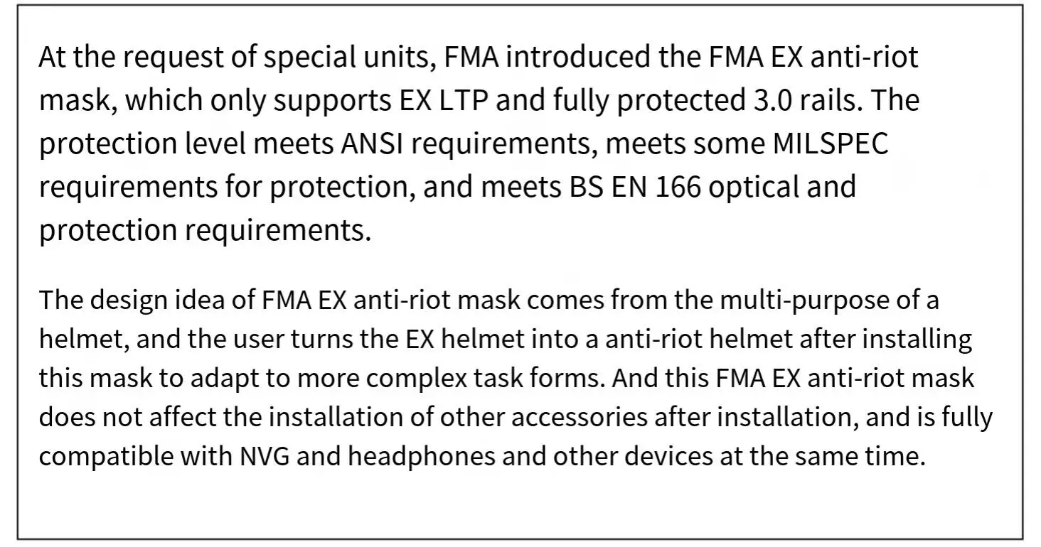 FMA Ex Wendy 3,0 casco dedicado máscara antidisturbios, gafas de protección tácticas Cs, protección contra el polvo y las salpicaduras, Tb1479