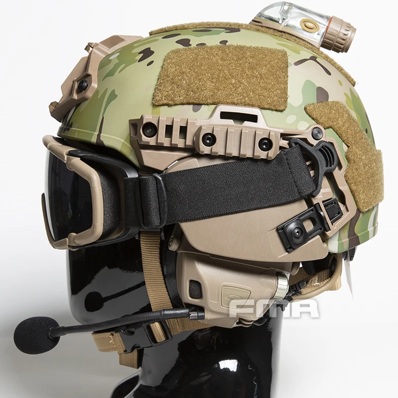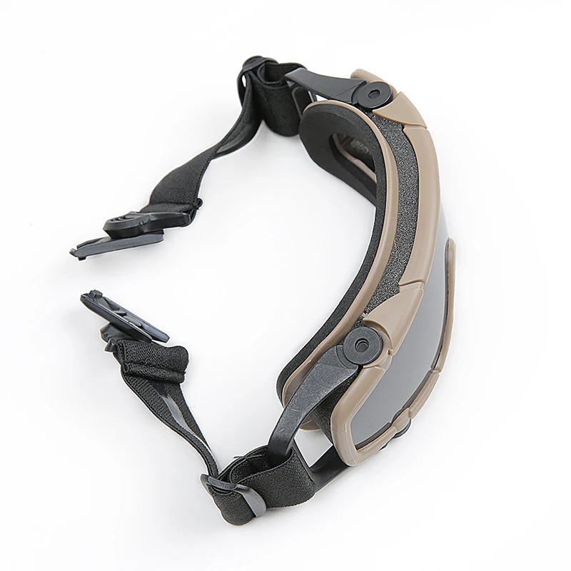 La versión con montura para casco de gafas balísticas FMA SI está hecha de nailon duradero y material de lente de PC, lo que garantiza una protección confiable para uso táctico y en exteriores. Presenta un diseño versátil con lentes intercambiables (Negro y Transparente) y está certificado por CE.
