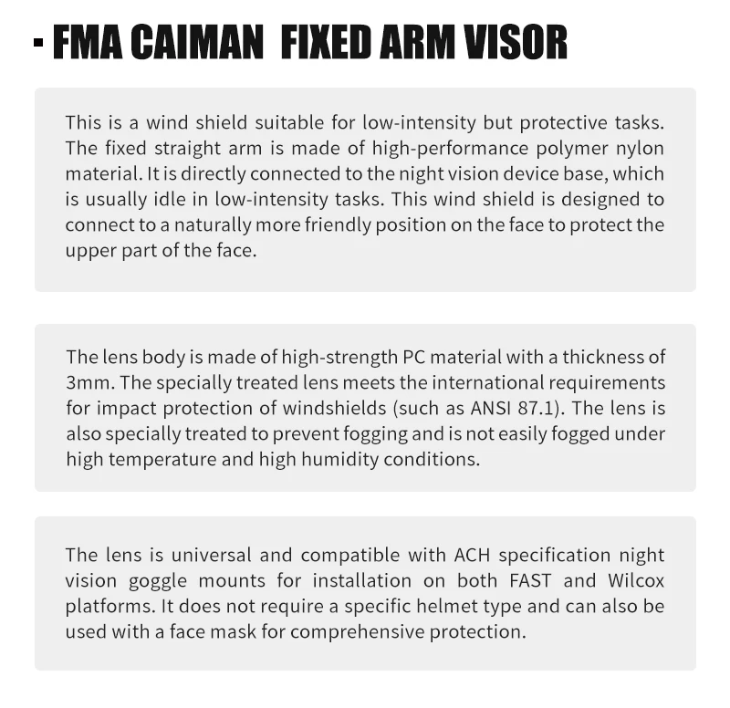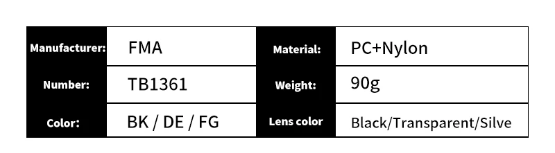 Casco táctico FMA, gafas protectoras de seguridad, visera de brazo fijo, gafas de 3mm, gafas gruesas antivaho