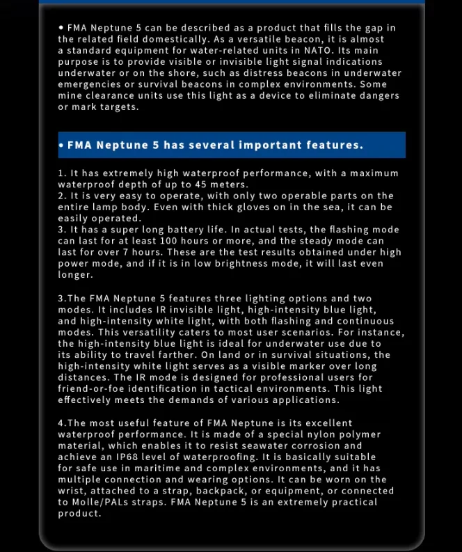 FMA-Luz LED de buceo hite + IR + marcador azul de alto brillo, IPX68, superimpermeable, luz de búsqueda y rescate, TB1482