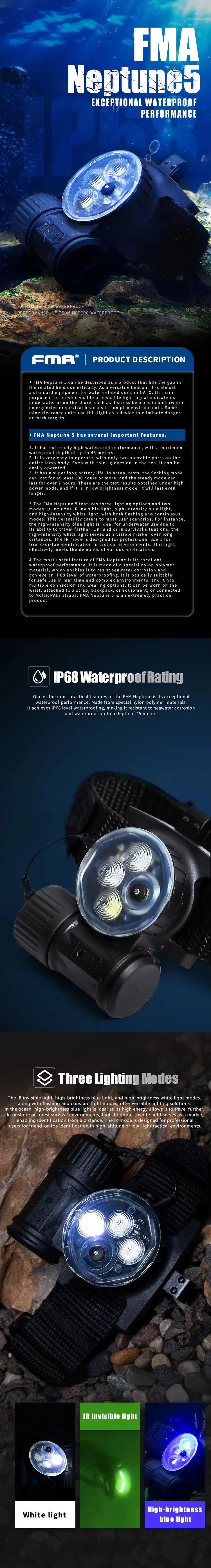 FMA Neptune5 IFF luz LED blanca + IR + alto brillo azul iluminación exterior luz impermeable de alto rendimiento TB1482