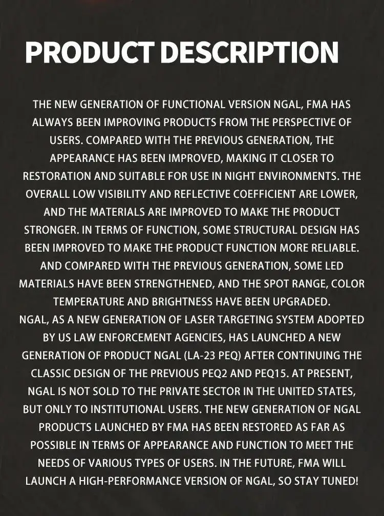 FMA NUEVA versión LAB Mini PEQ-NGAL Luz LED + IR Láser Rojo Táctico NGAL