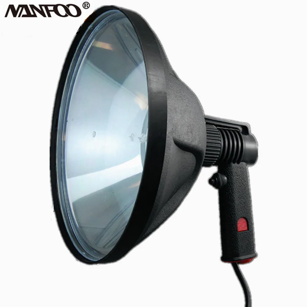 El HH10''-100W es un foco portátil halógeno de 100 vatios que emite 1000 lúmenes.Sus aplicaciones ideales incluirían navegación recreativa, pesca, caza, búsqueda, rescate y seguridad.Este foco produce un haz capaz de expandirse hasta 400-800 metros.Este foco liviano, ultra resistente y ergonómico funciona con 12 voltios de corriente continua y puede usarse como foco o reflector.
