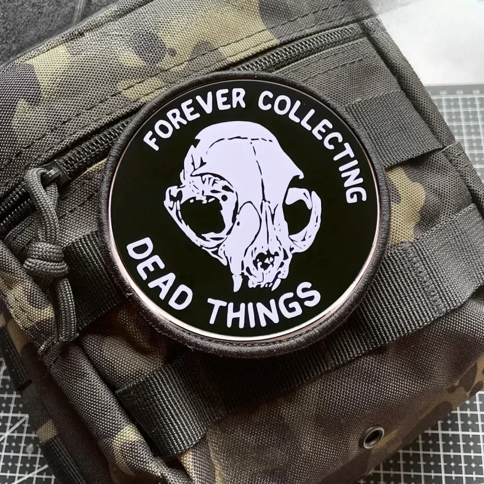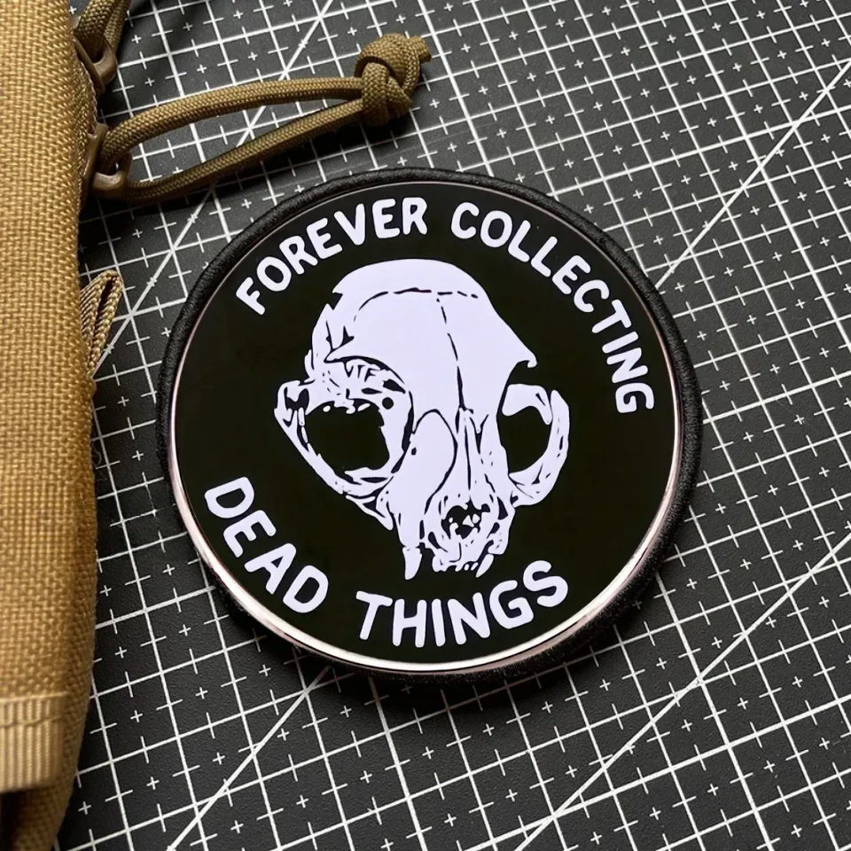Forever Collecting Dead Things Moral Badge Punk Skull parches tácticos Halloween impreso Hook & loop emblema mochila sombrero pegatinas