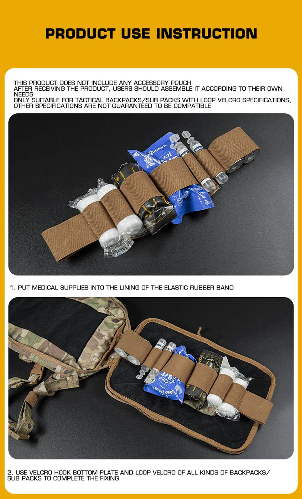 Forro fijo médico táctico, placa Base de bucle de gancho mágico, bolsa militar para caza al aire libre, forro de banda elástica, Kit fijo de herramientas médicas