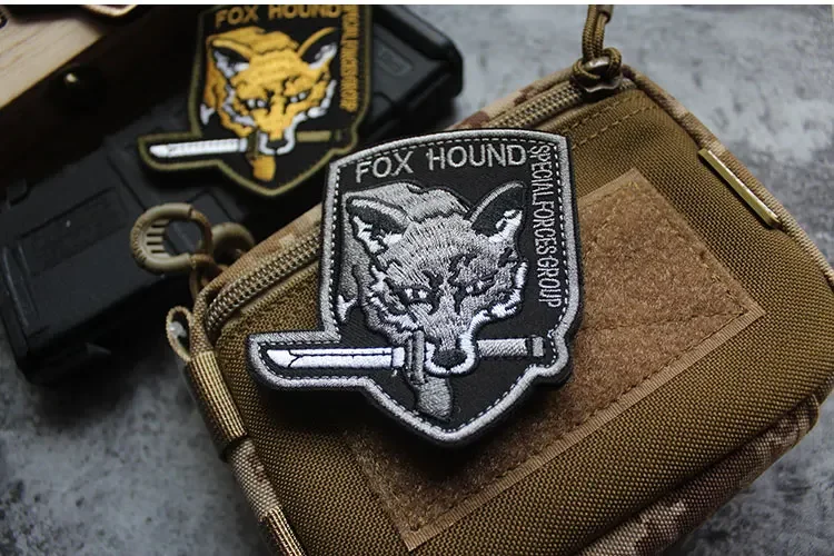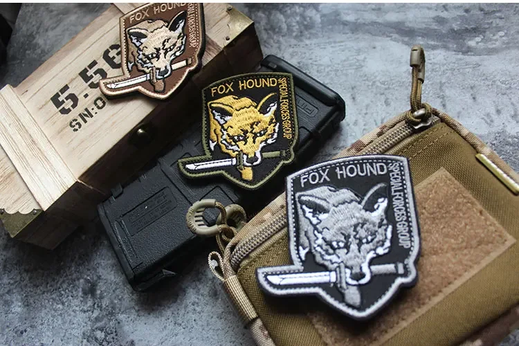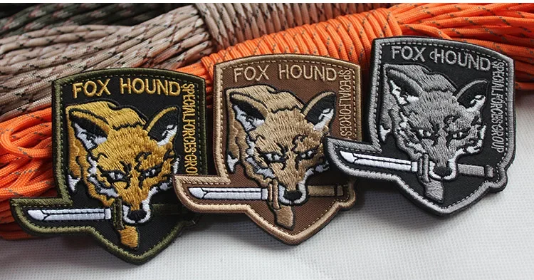 Parches tácticos bordados FOXHOUND, Parche de gancho y bucle, insignias de Moral del Ejército militar, brazalete, apliques, mochila, pegatinas para sombreroCaracterísticas: