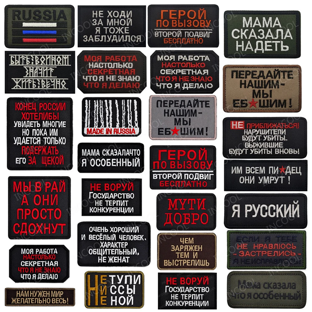 Frases motivacionales Rusia motociclista ruso dicho divertido parches con eslogan traje bordado apliques para ropa mochila gorra