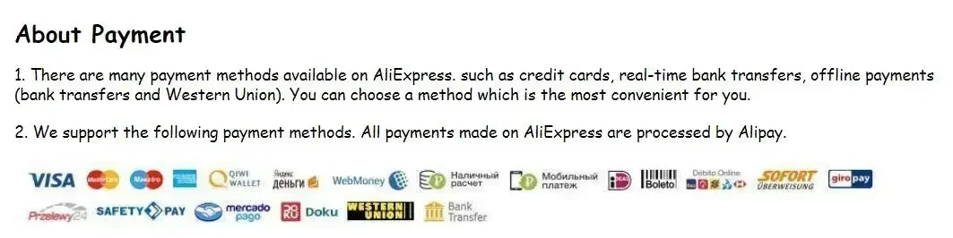 Tenga en cuenta que el tiempo de entrega proporcionado por Aliexpress es aproximado y puede variar según la distancia desde China y las regulaciones aduaneras.