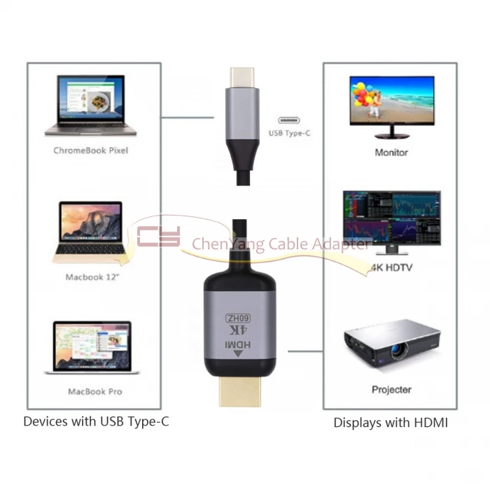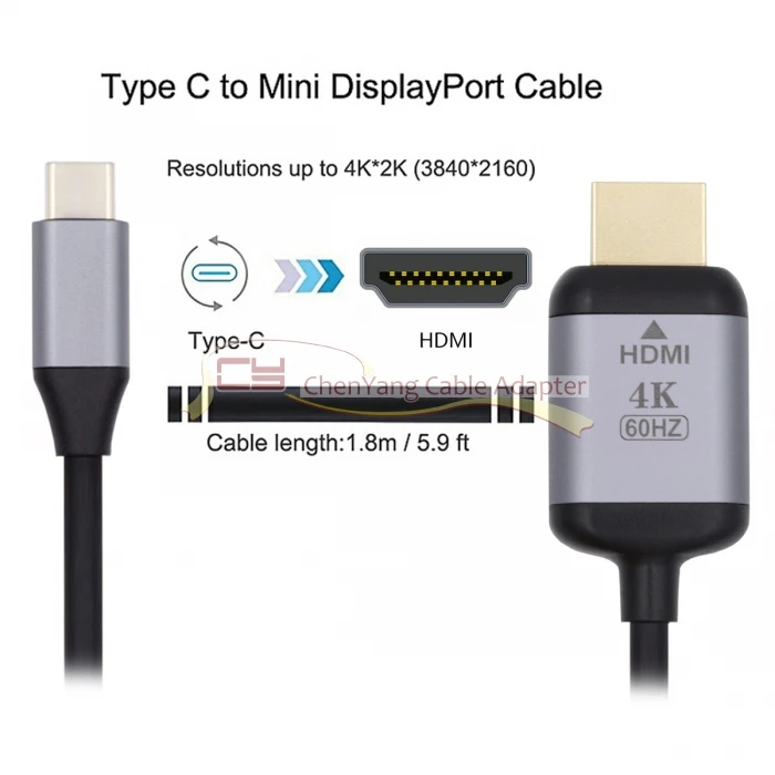 USB 3,1 Tipo C Fuente de AHDTV HDMIDisplays Male 4K Monitor Cable para Laptop 1,8 m