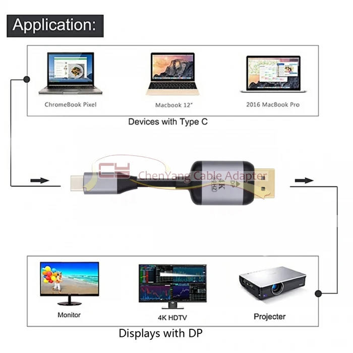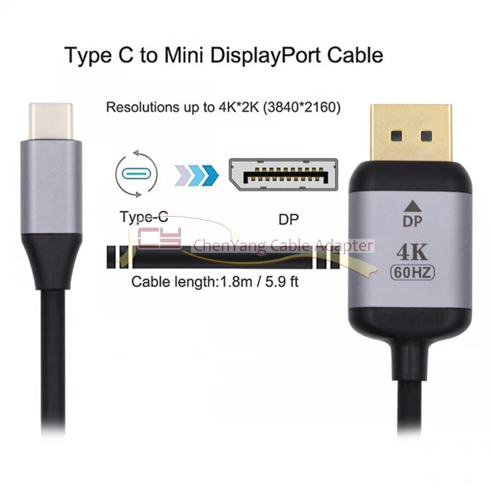 USB 3,1 tipo C a la que se puede conectarDisplayPort DPCable de monitor 4K macho para Mac y portátil 1,8 m
