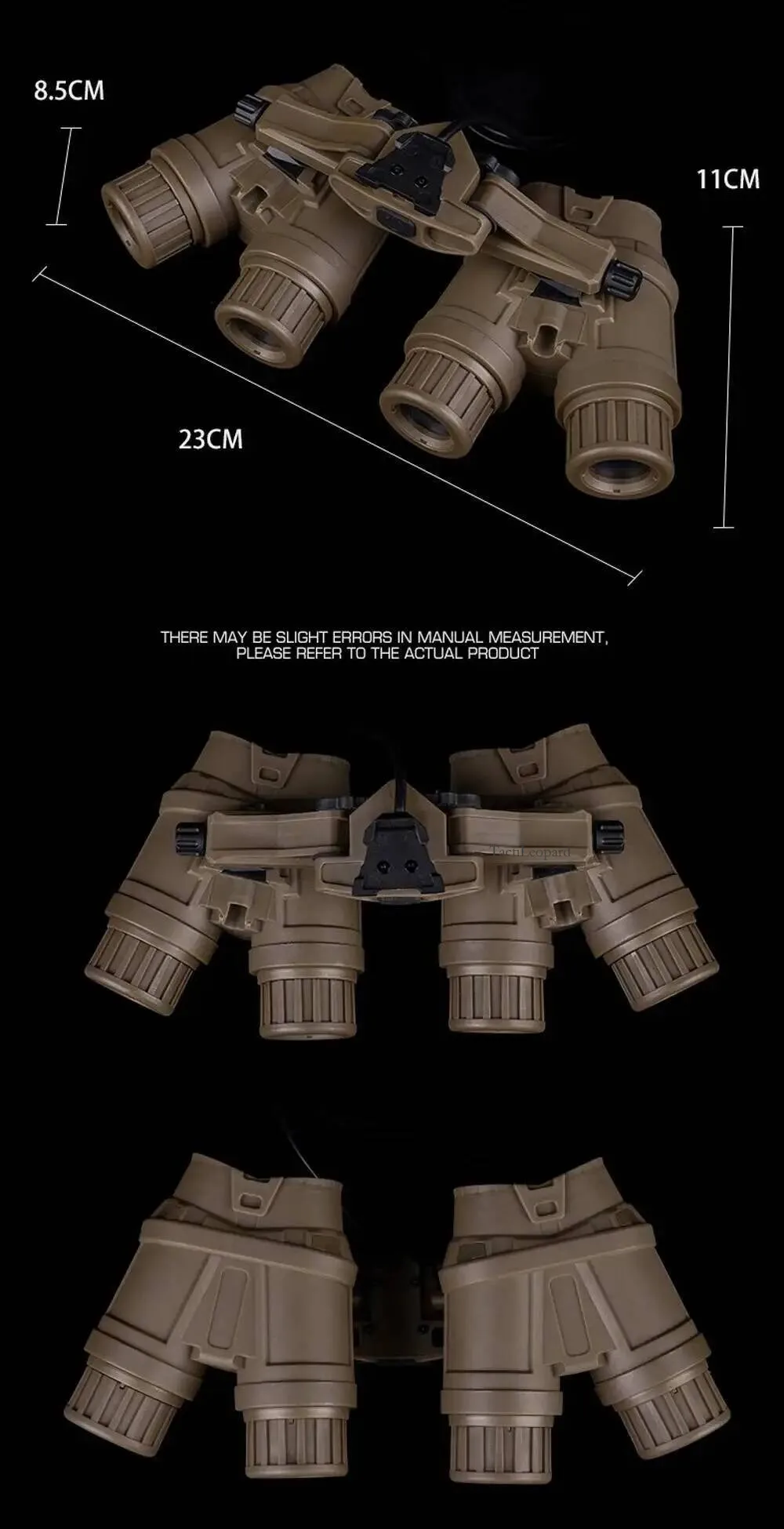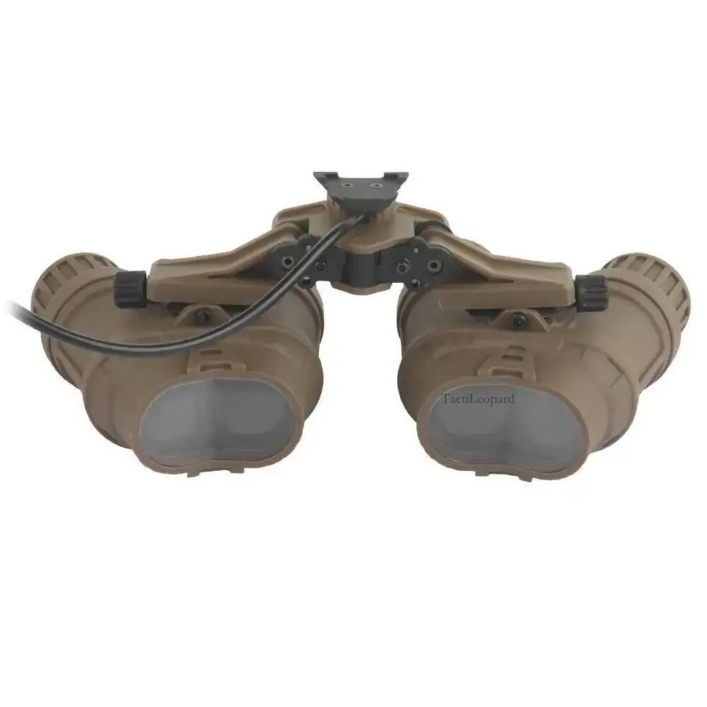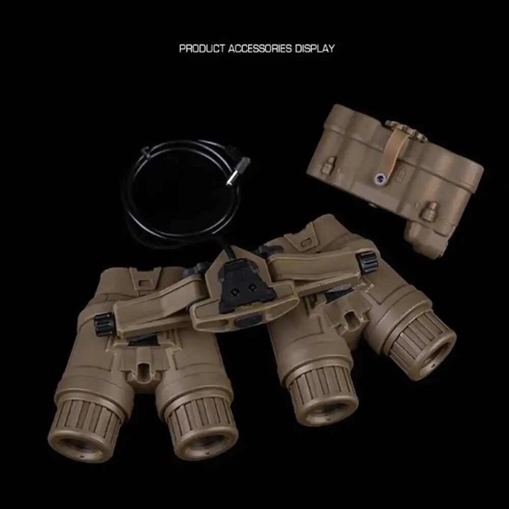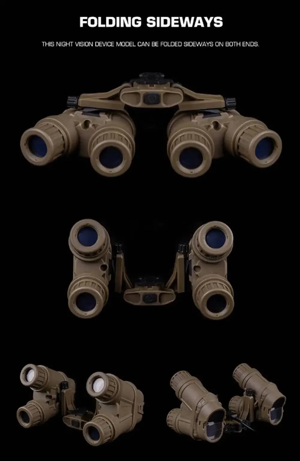 Nombre del producto: Modelo simulado NVG GPNVG-18 con giro lateral Tamaño del producto: 23*14*9,5 CM Peso neto del producto: 0,342 KG Color del producto: Negro/Tan Material principal: nailon Escena aplicable: caza, deportes al aire libre y otros accesorios tácticos de atletismo Airsoft CS, etc.