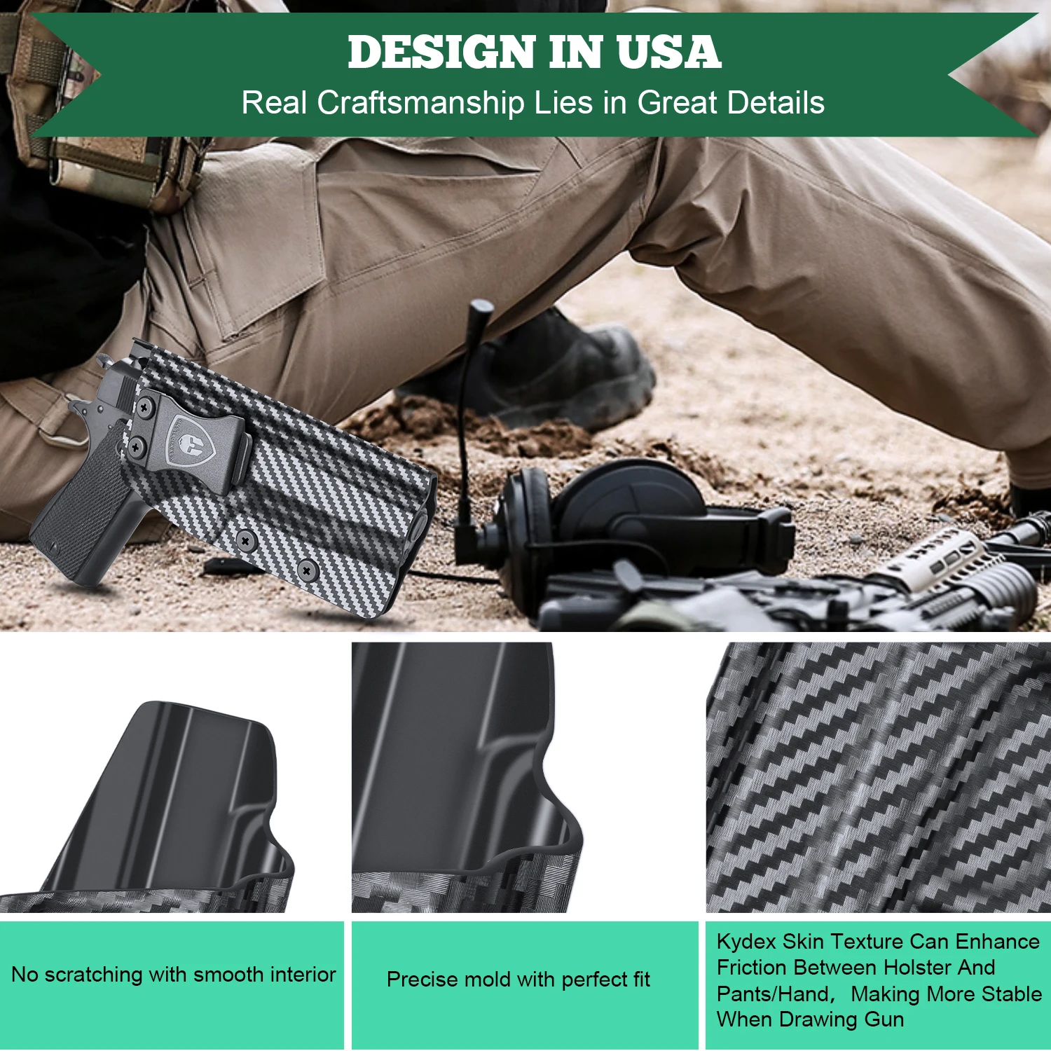 【Diseño Kydex de ee.uu. 】.08 ''US Kydex hizo cómodo y duradero. Fuera de la funda de transporte abierta de la pretina para hellcat, mantenga su pistola 1911 en perfectas condiciones (Nota: no se ajusta a ningún riel/láser/luz)