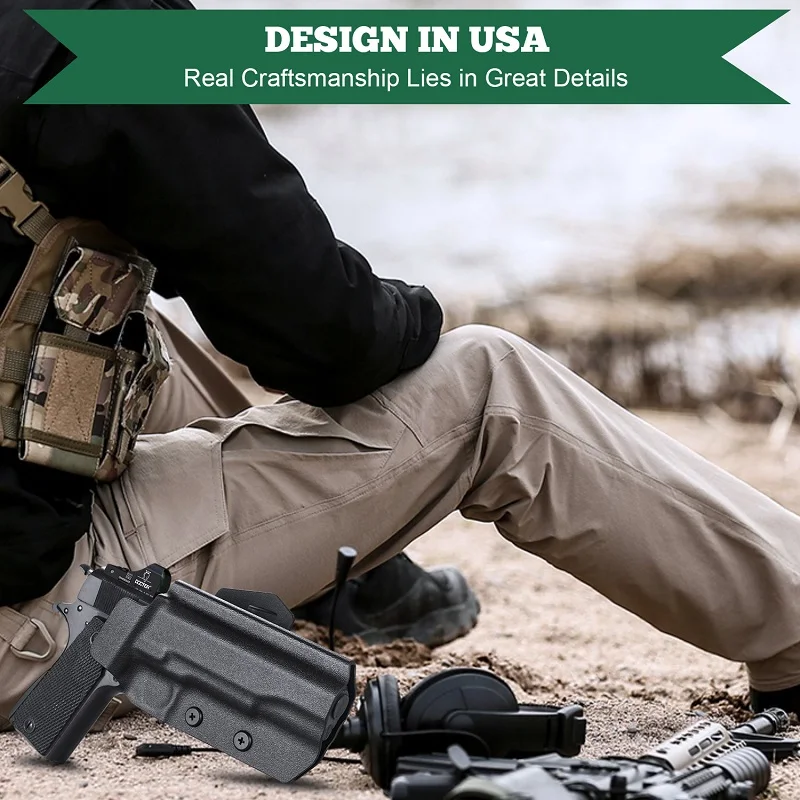 【Diseño Kydex de ee.uu. 】.08 ''US Kydex hizo cómodo y duradero. Fuera de la funda de transporte abierta de la pretina para hellcat, mantenga su pistola 1911 en perfectas condiciones (Nota: no se ajusta a ningún riel/láser/luz)