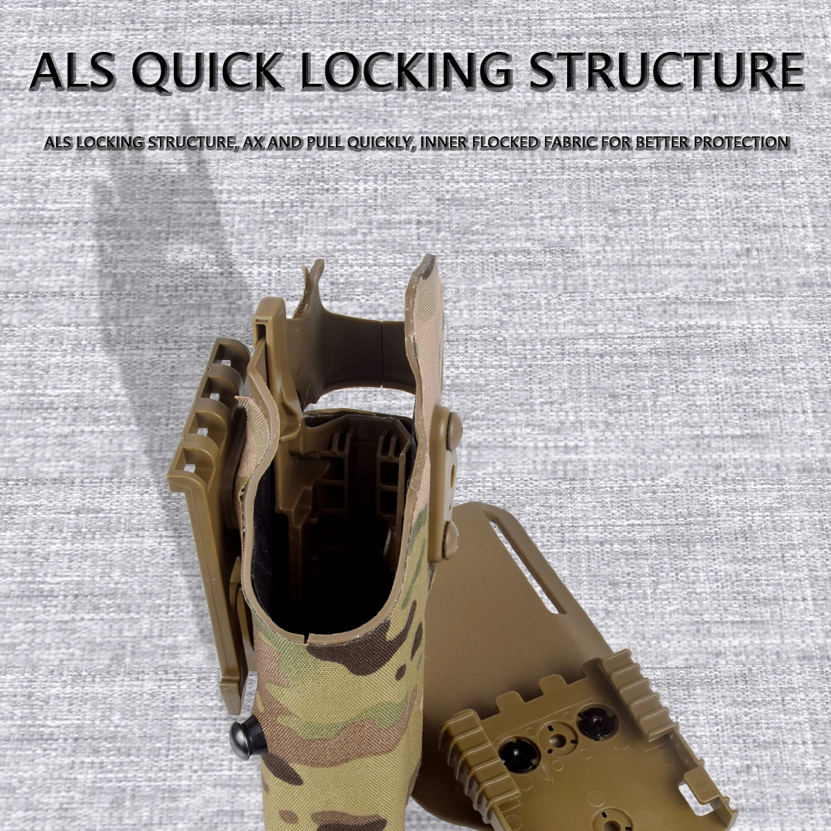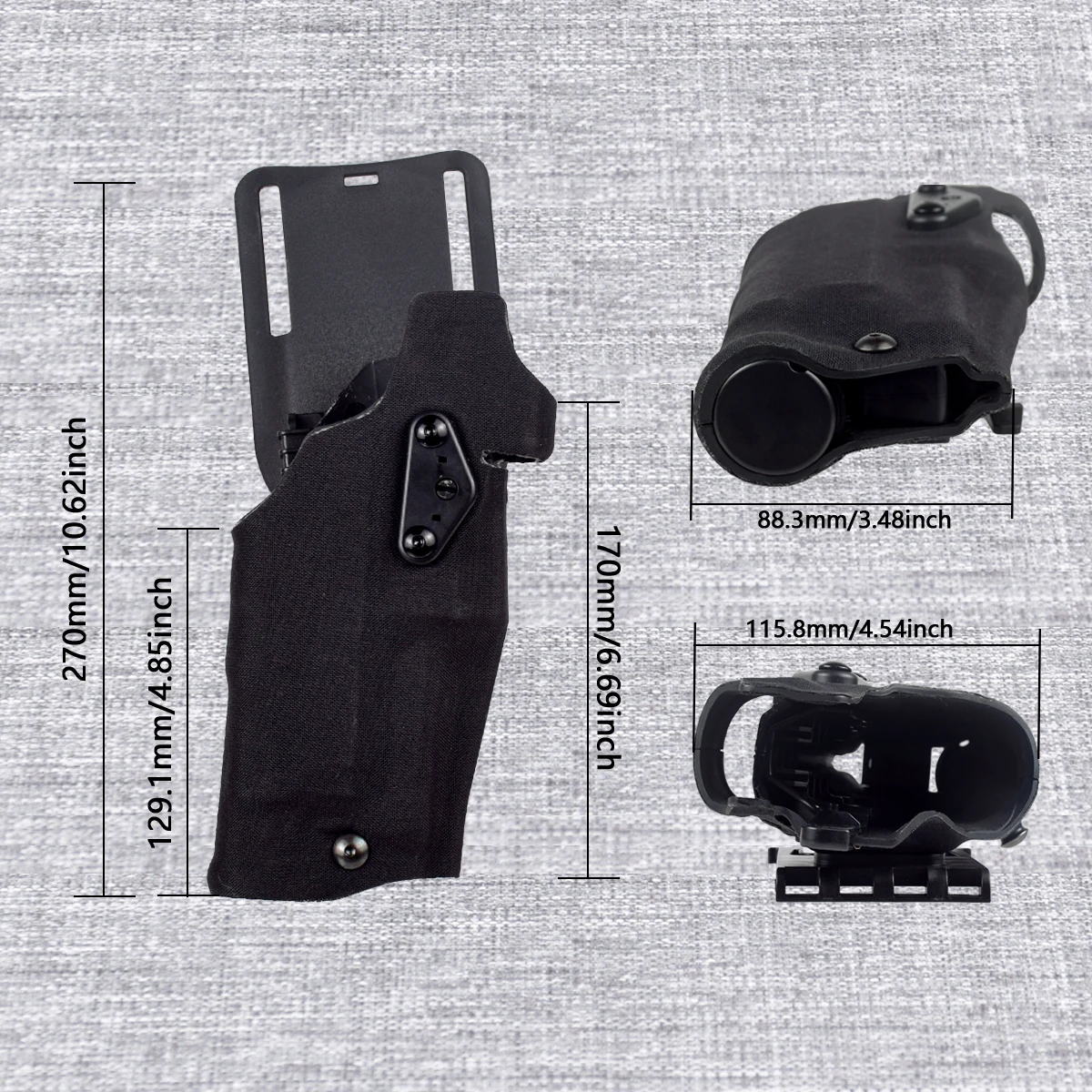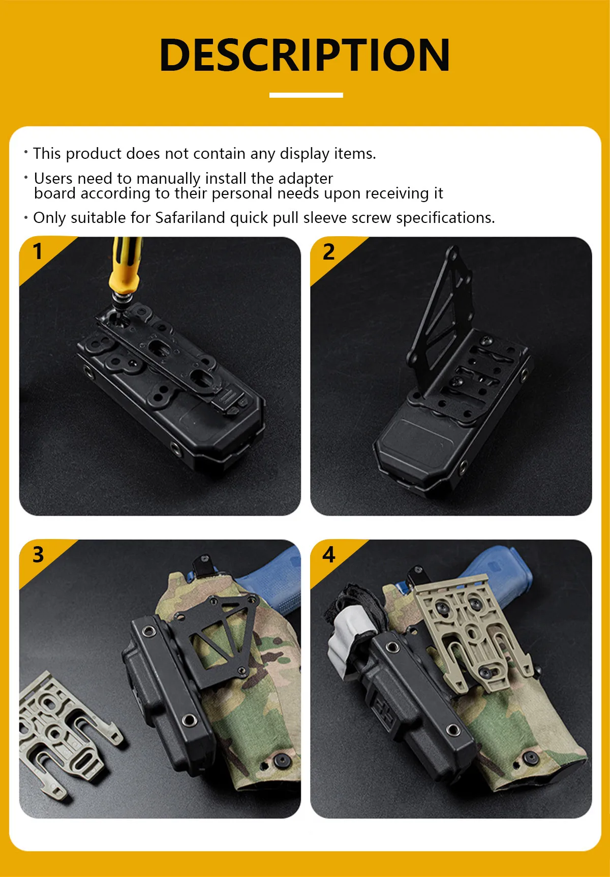 ②Se adapta solo a la funda de 3 orificios Safariland®, no se garantiza que otras sean compatibles.