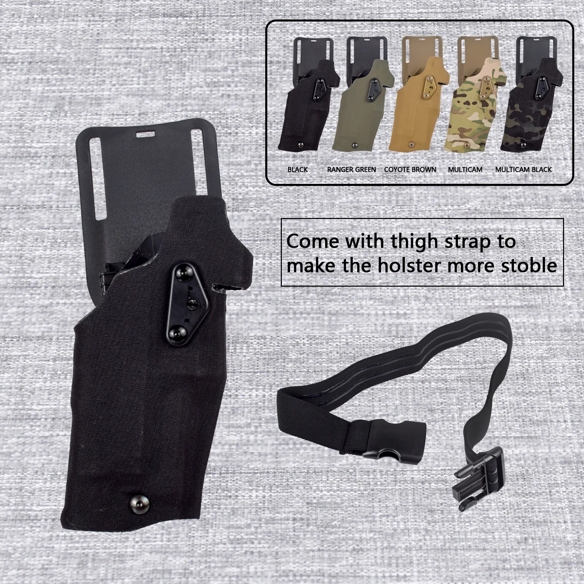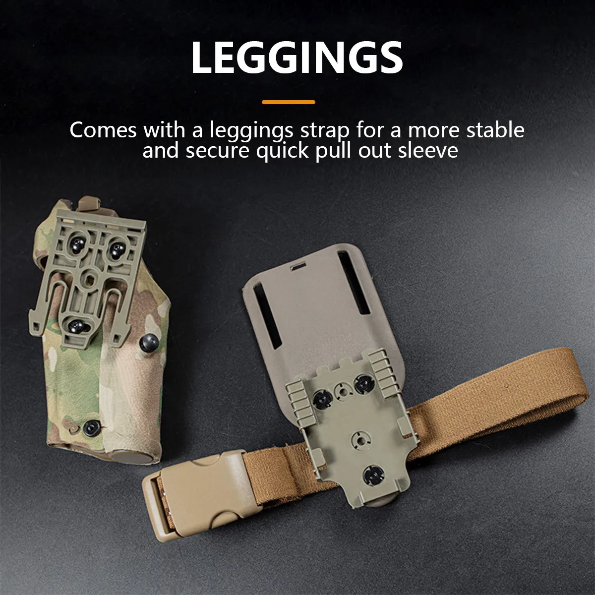 El adaptador de funda modular fue diseñado específicamente para eliminar el movimiento no deseado, la flexión y el deslizamiento comunes a los adaptadores de correa de polímero de fábrica. Se adapta a todas las fundas con patrón de "tres agujeros" y otras marcas de fundas que utilizan este método de fijación probado. También admite el uso de muchos sistemas de funda de separación rápida de uso común, como QLS, MLS, ELS y otros. El Kit de correa para pierna MHA está incluido.